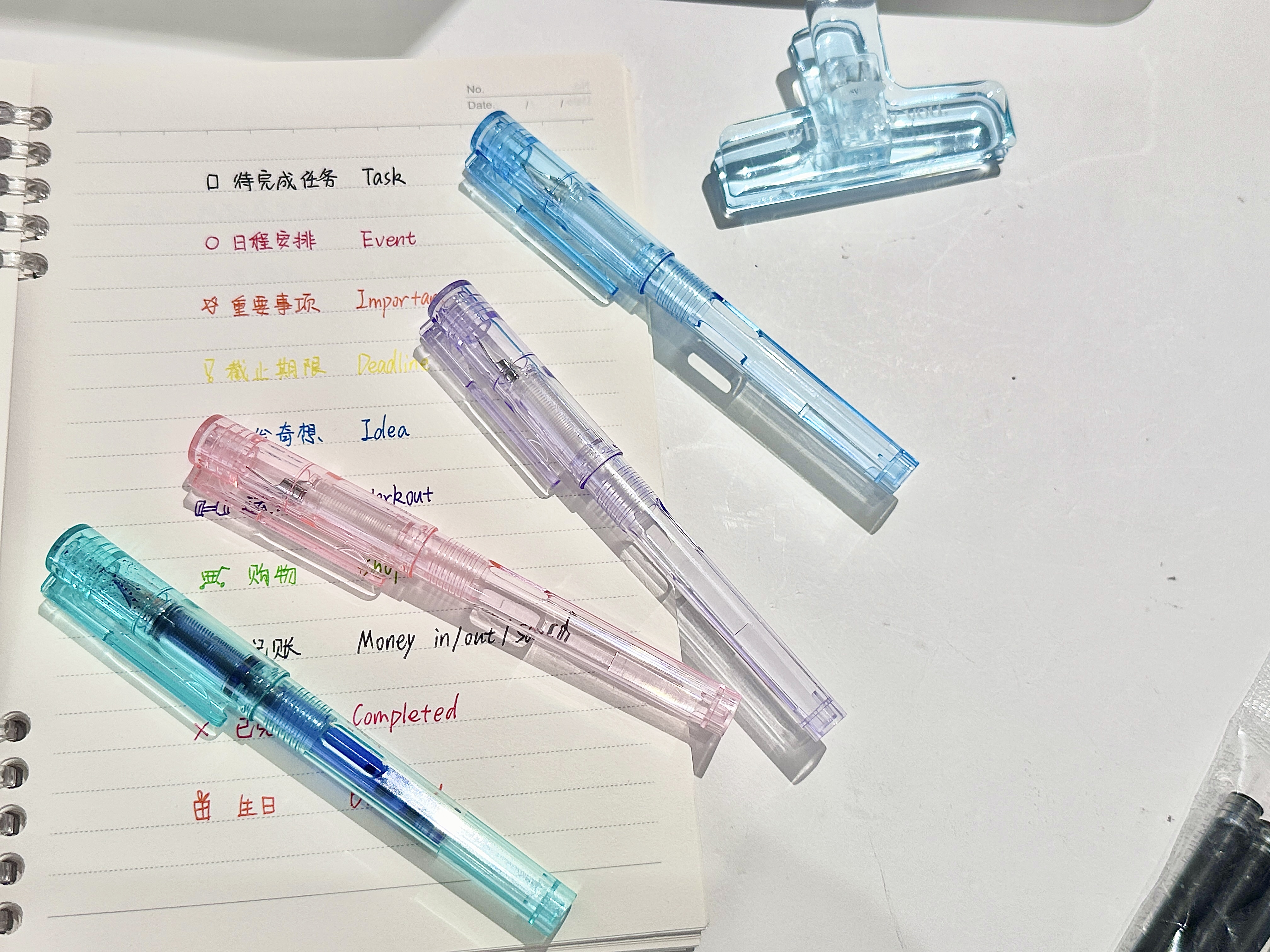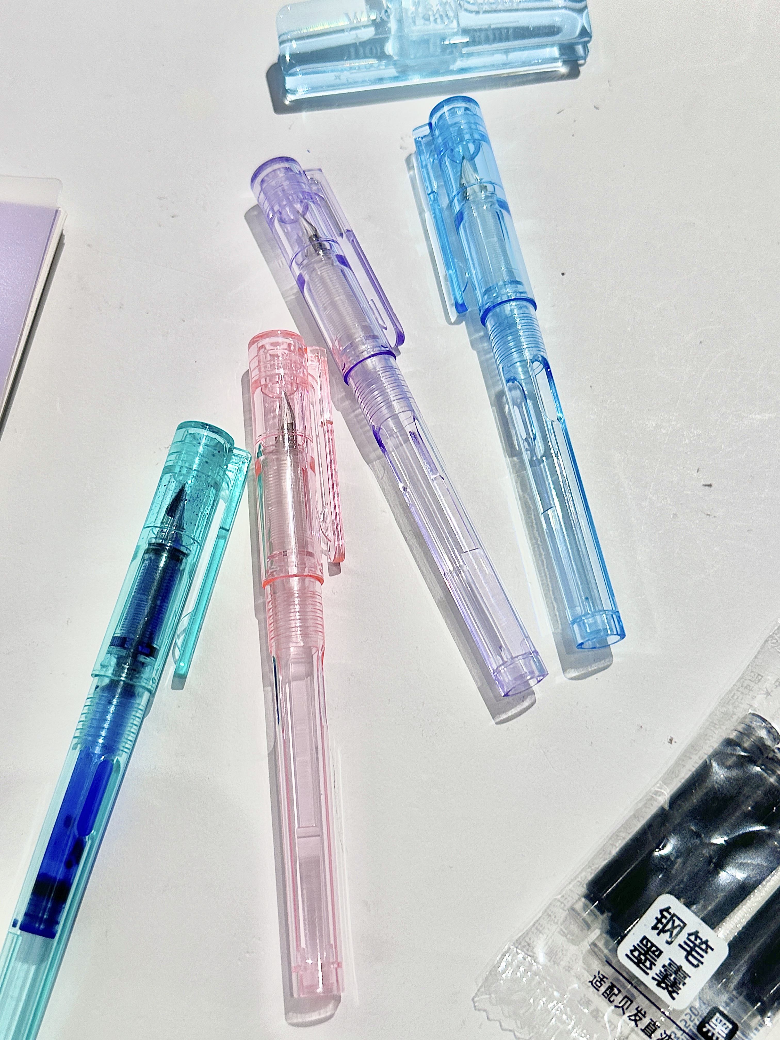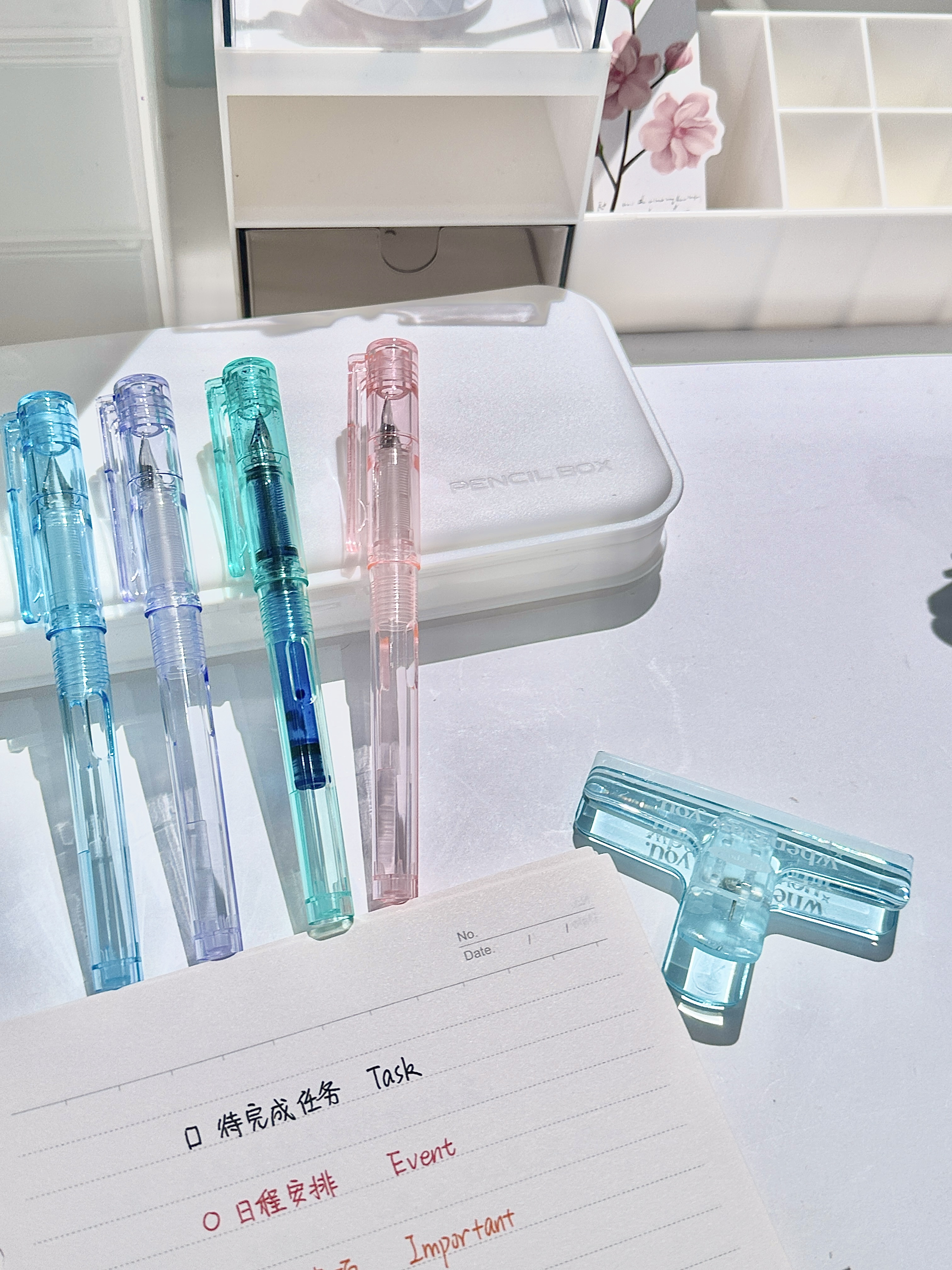 颜值超高的透明钢笔,清新色彩与透明材质相得益彰,如同阳光下苏打水中升腾的气泡带来甜甜轻爽的书写旅程