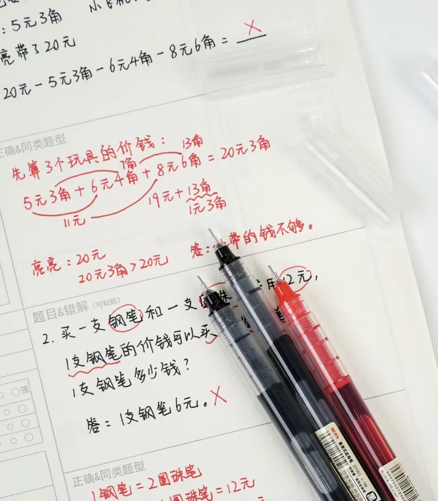 特别研制了快干墨水,解决直液笔容易脏手、脏本子的烦恼