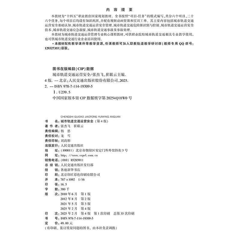 书名:城市轨道交通运营安全(第4版)