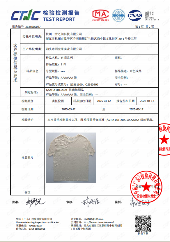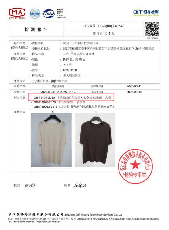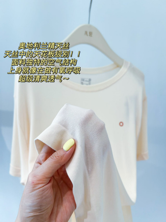 天丝面料自带降温属性 一穿上身就能感到凉快~ 这可不是凭空捏造 我们可都是有检测报告的 告别黏糊糊的闷热感~ 桑拿天也能穿得清清爽爽