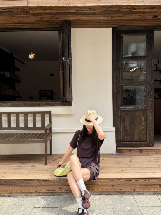 有两个颜色可以选择 从轻白就很日常 穿起来显得简洁干净,也好搭 沉香褐就会更高级一些 一套上身很有ins博主的那种感觉~
