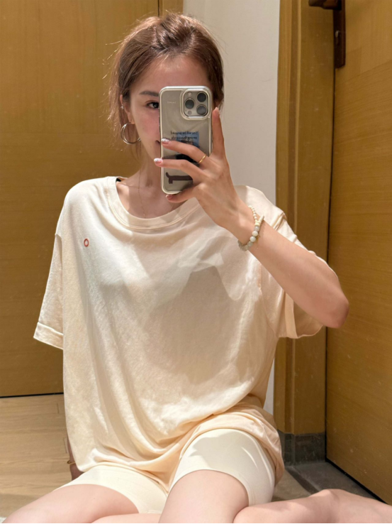 微落肩的Oversize版型T恤 完全不挑身材,藏肉一绝 垂感超好还自带廓形 简简单单就很有范儿 随便一搭就是博主同款慵懒风