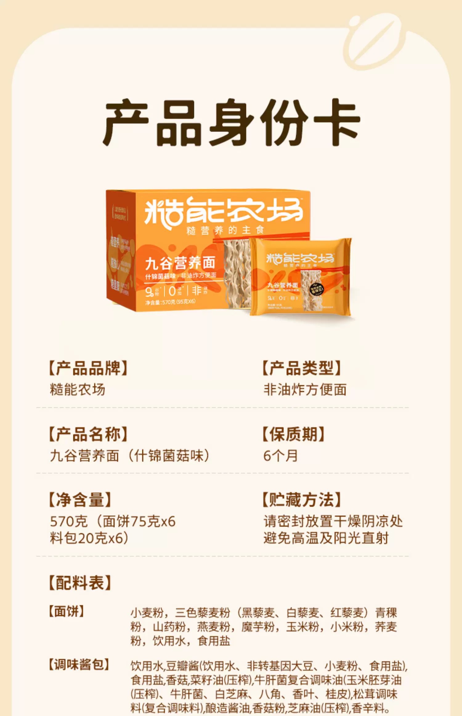 (糙能农场)九谷营养面 什锦菌菇风味 9种糙能营养 助攻膳食平衡 含酱包 菜包 粉包