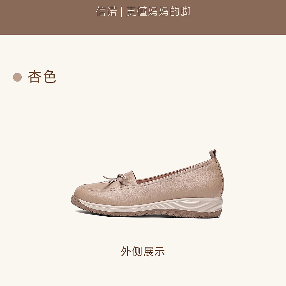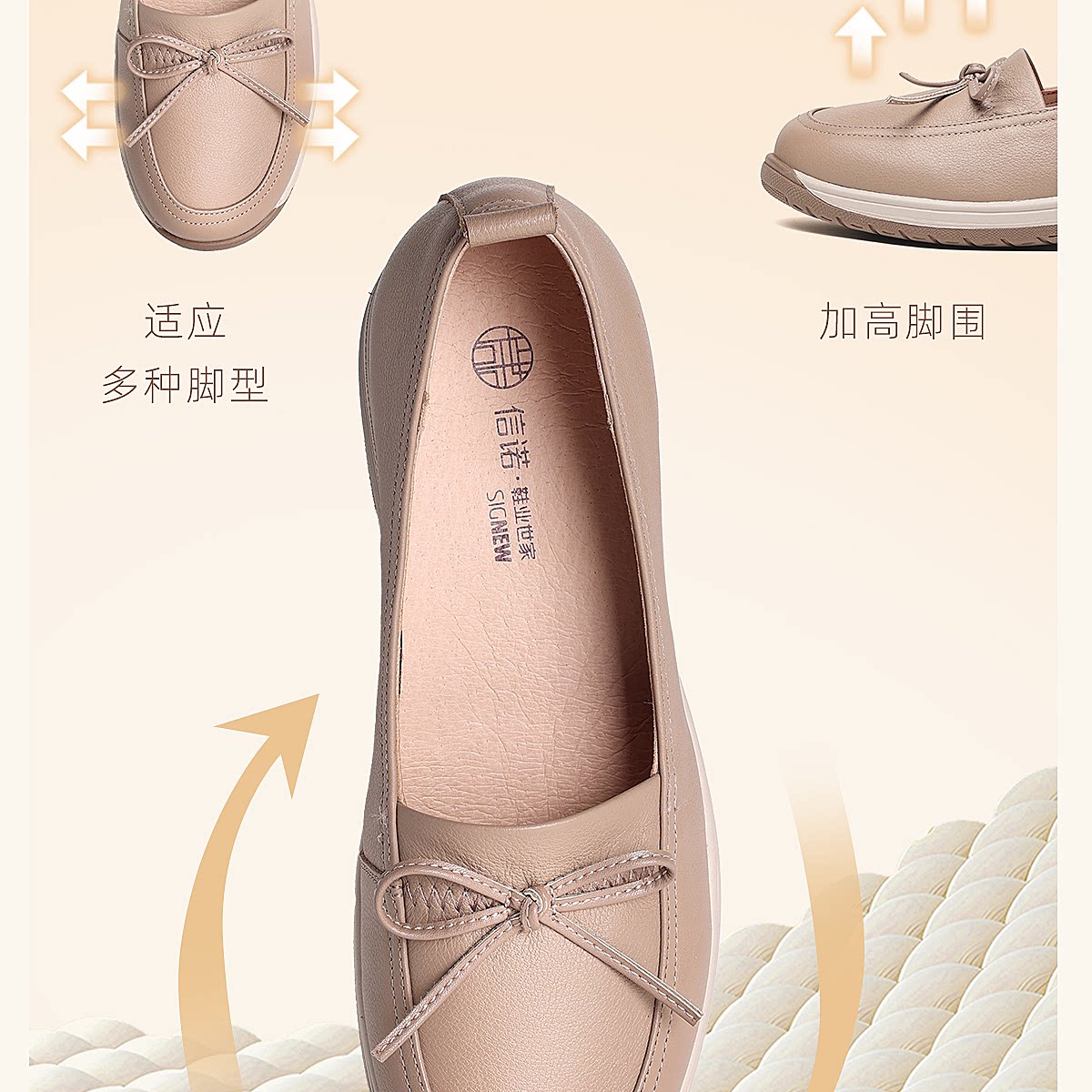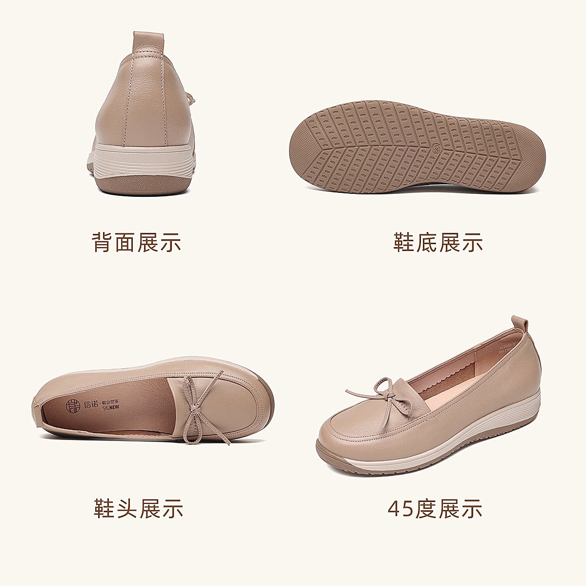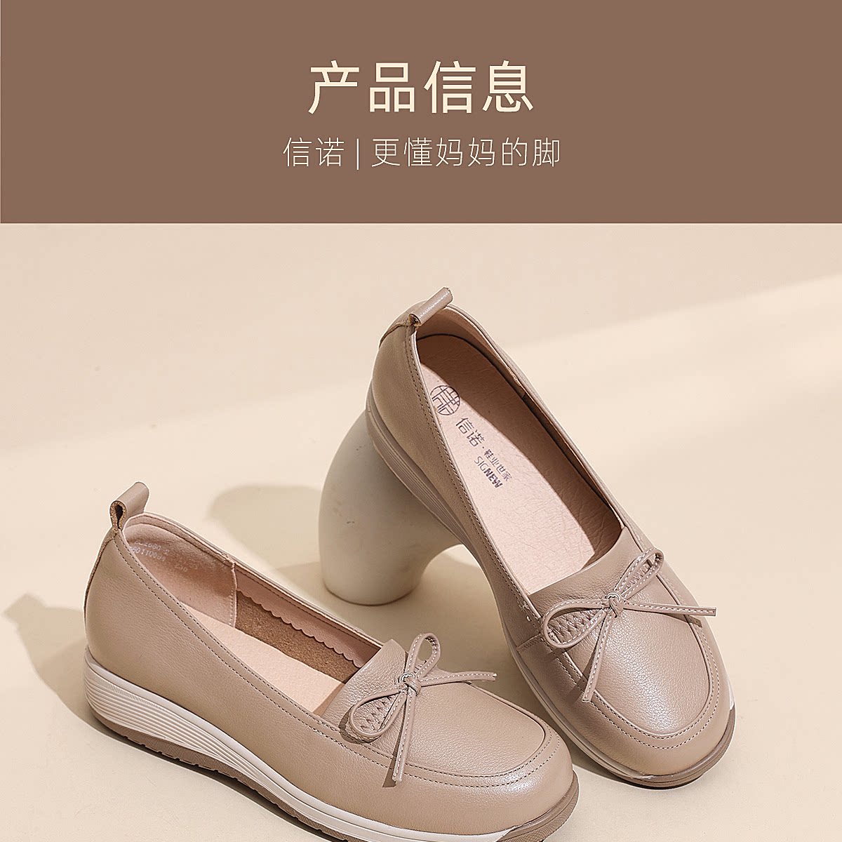 信诺蝴蝶结平底单鞋女真皮软底舒适一脚蹬妈妈鞋温柔风6C2680-2