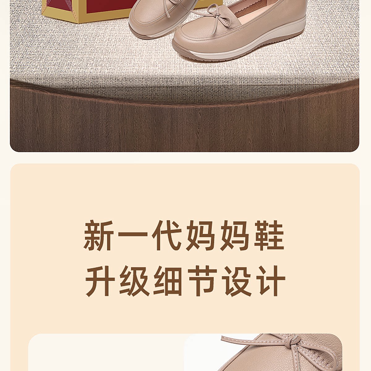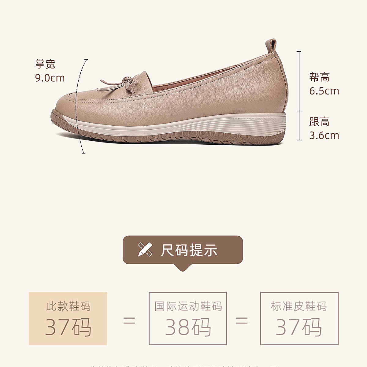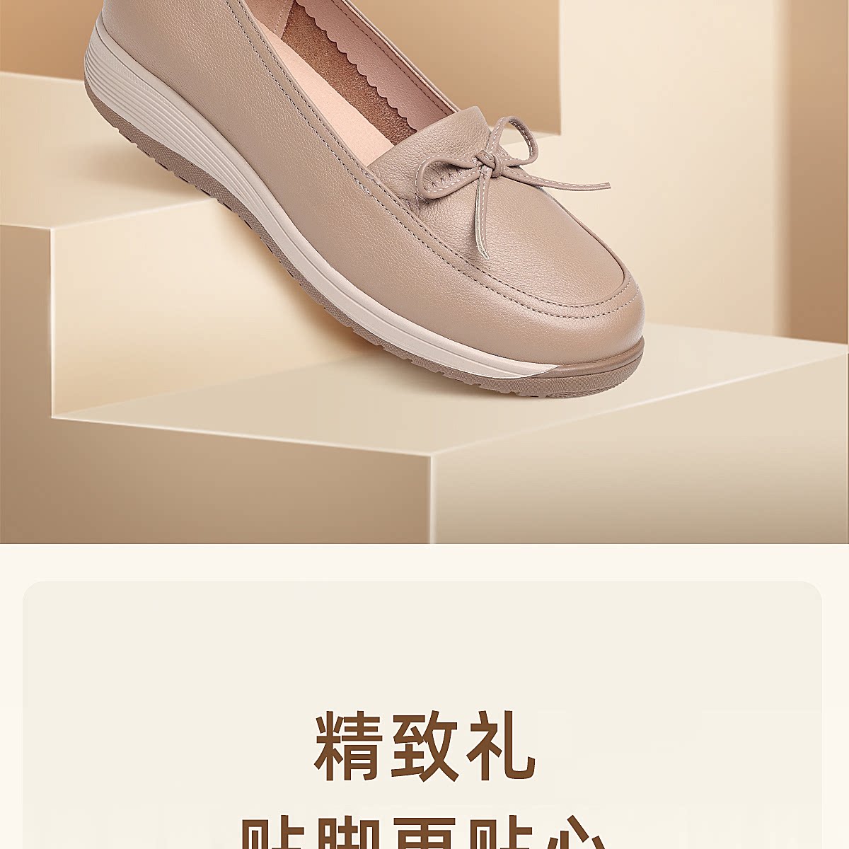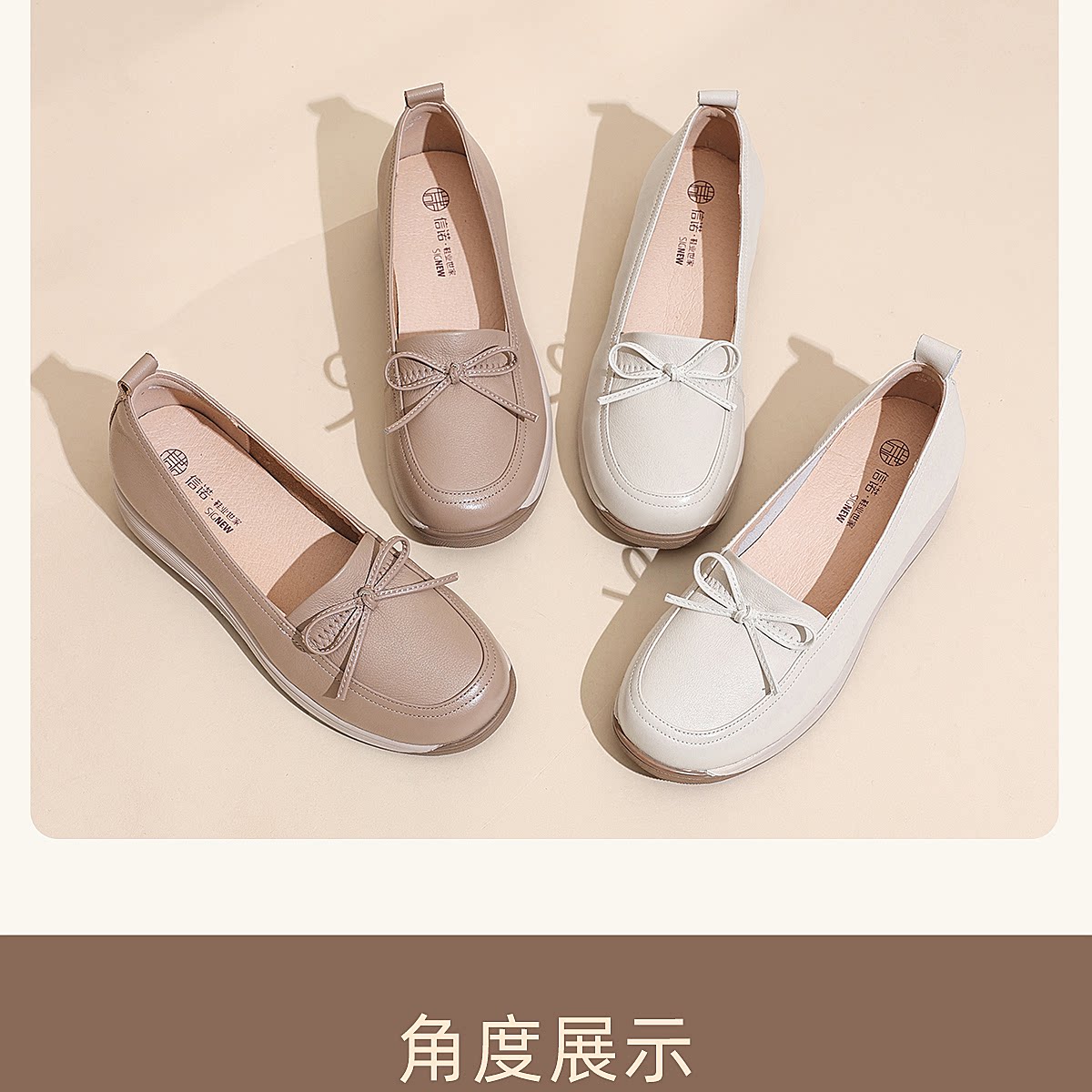 信诺蝴蝶结平底单鞋女真皮软底舒适一脚蹬妈妈鞋温柔风6C2680-2