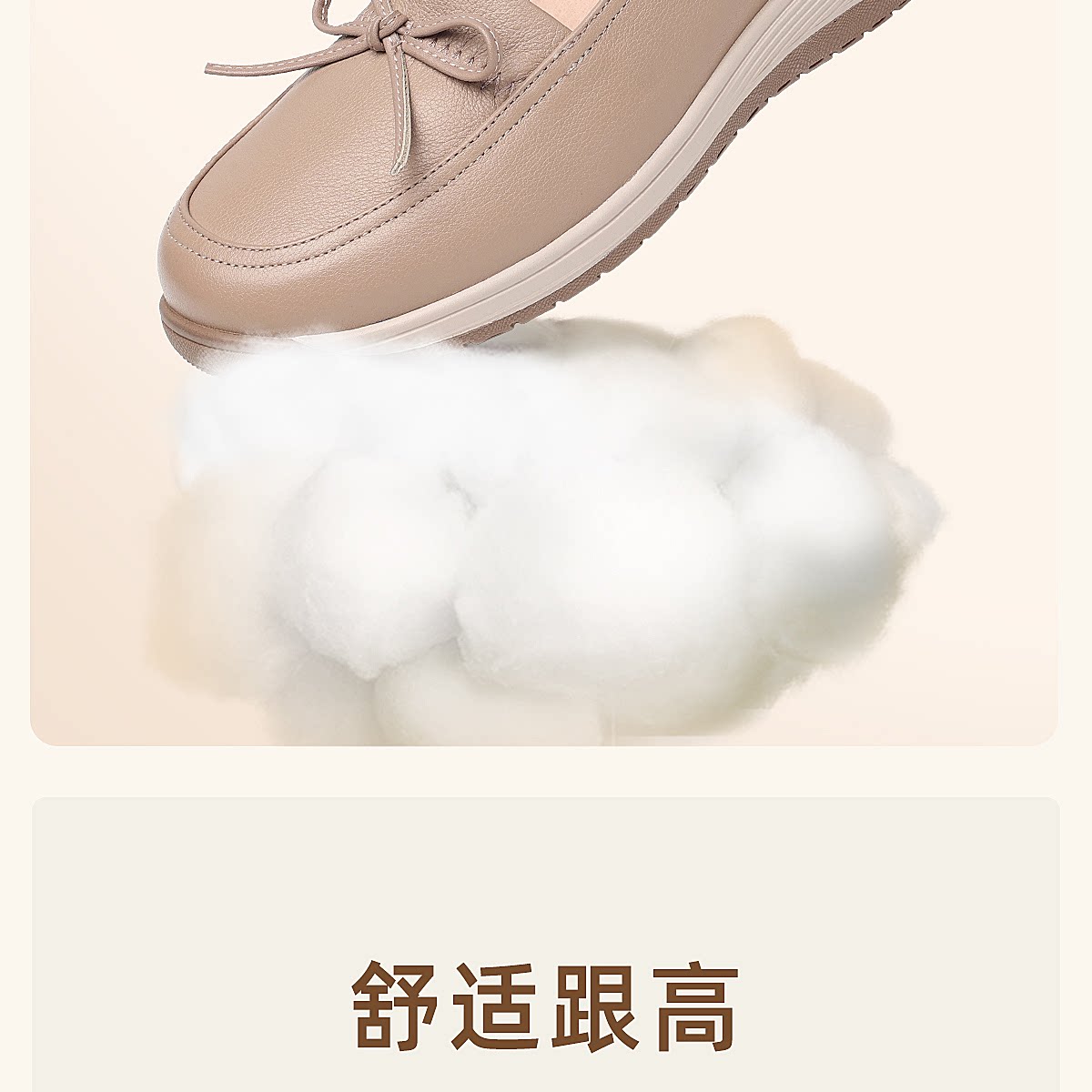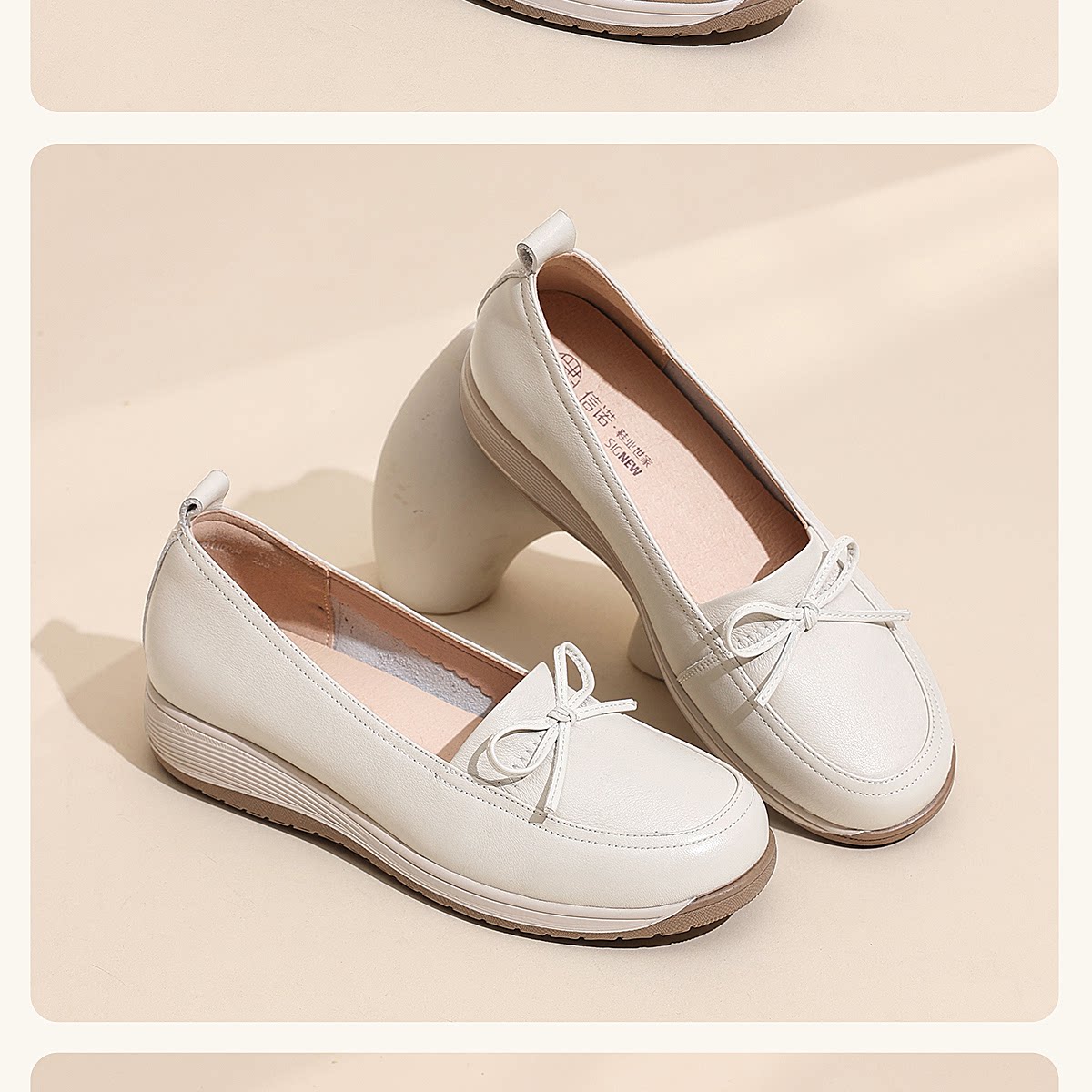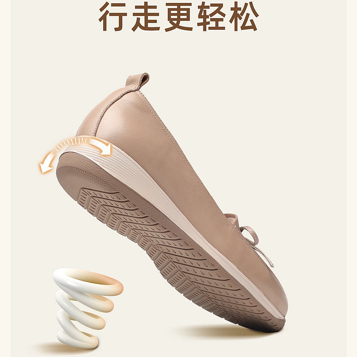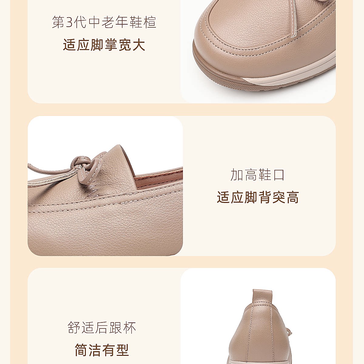 信诺蝴蝶结平底单鞋女真皮软底舒适一脚蹬妈妈鞋温柔风6C2680-2