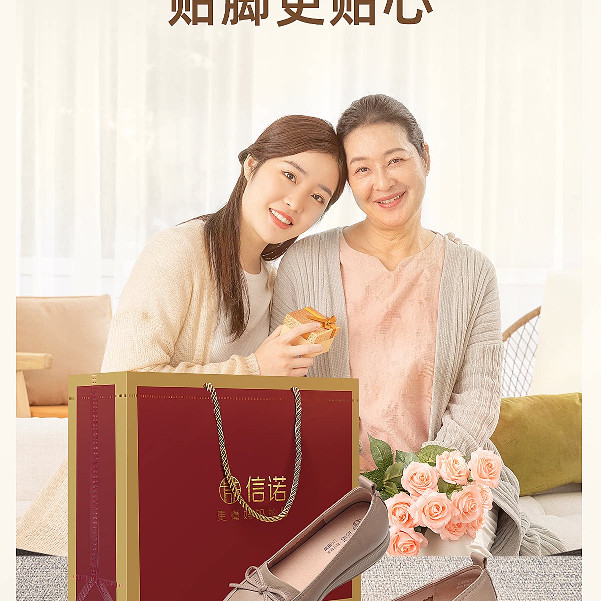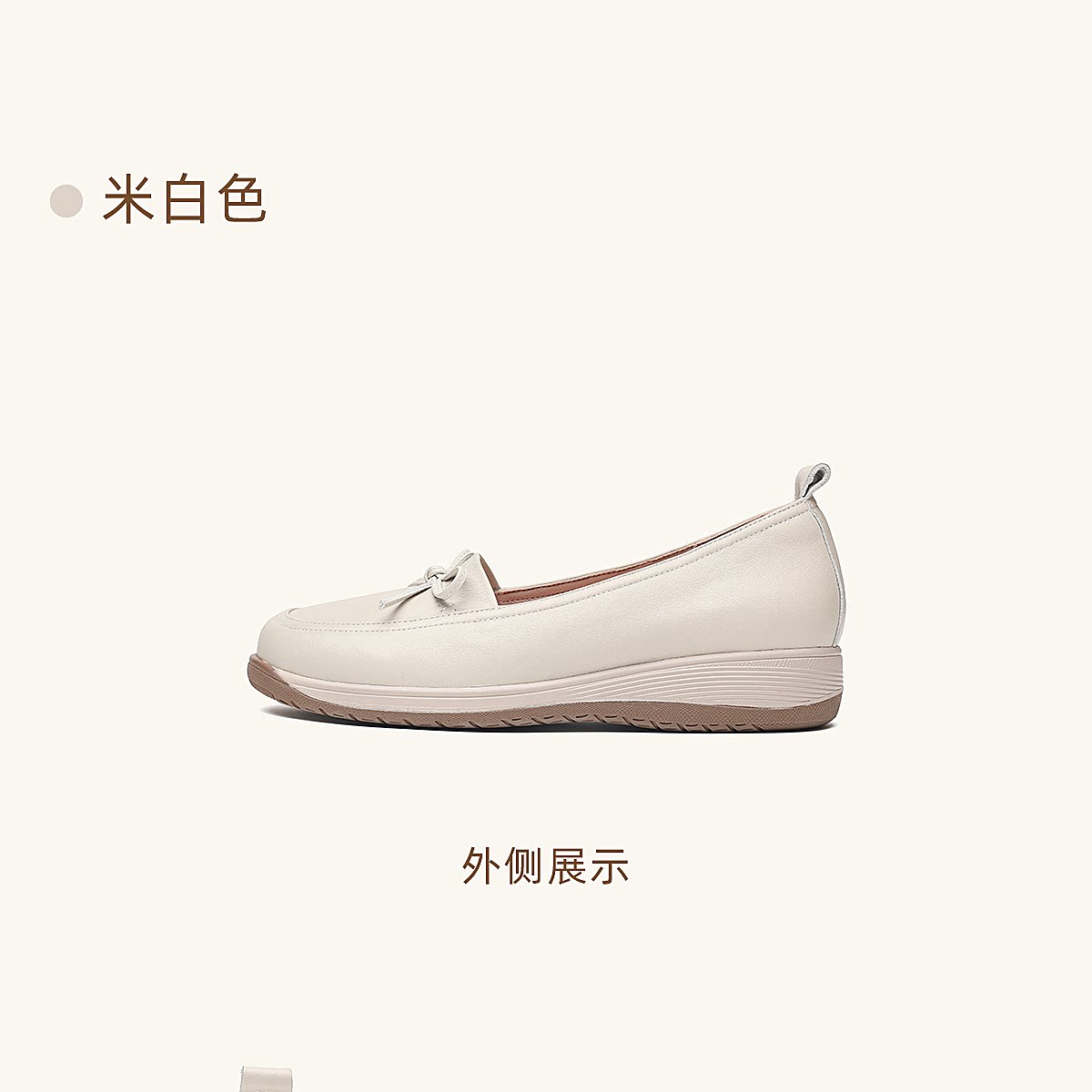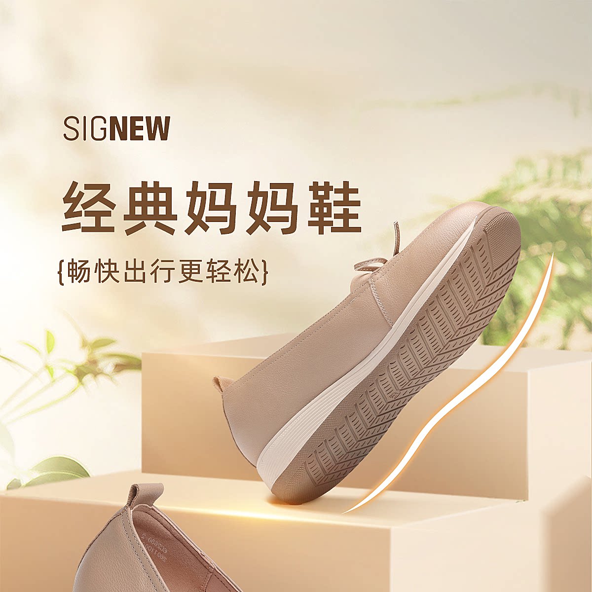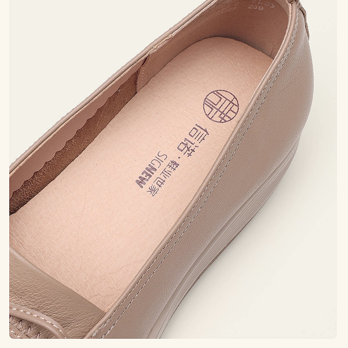 信诺蝴蝶结平底单鞋女真皮软底舒适一脚蹬妈妈鞋温柔风6C2680-2