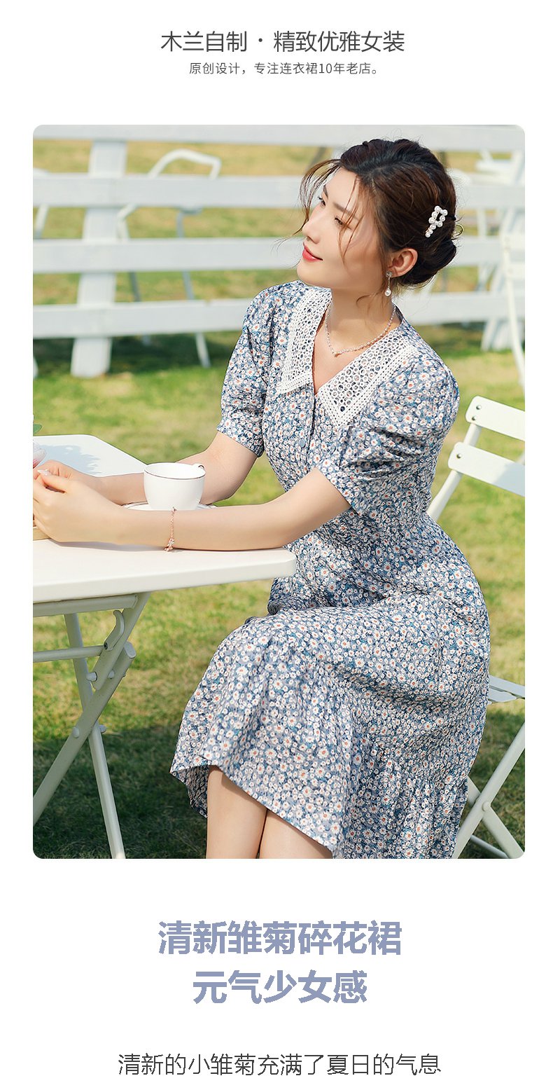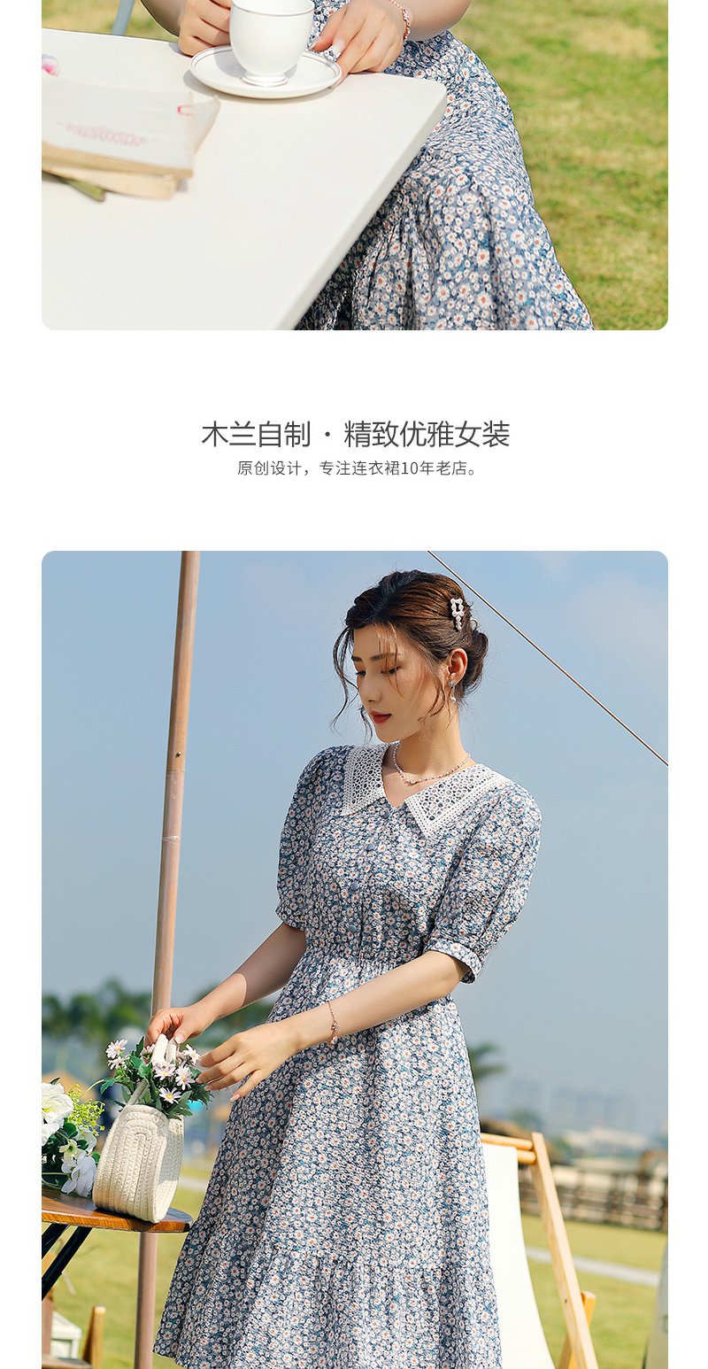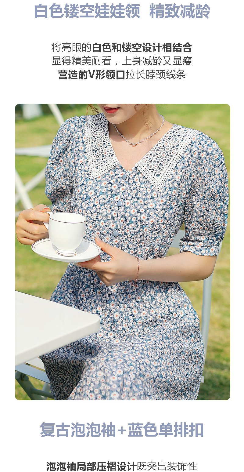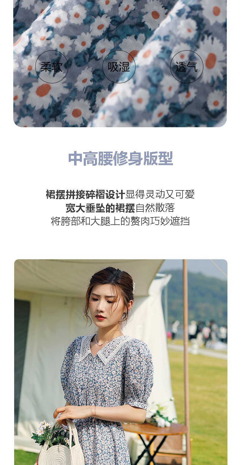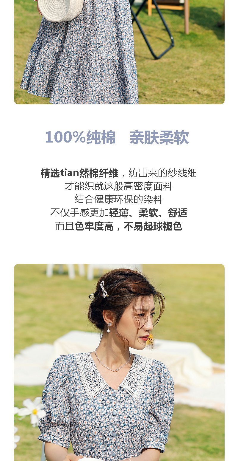勿忘花纯棉碎花连衣裙女夏2024夏季新款气质娃娃领法式泡泡袖裙子