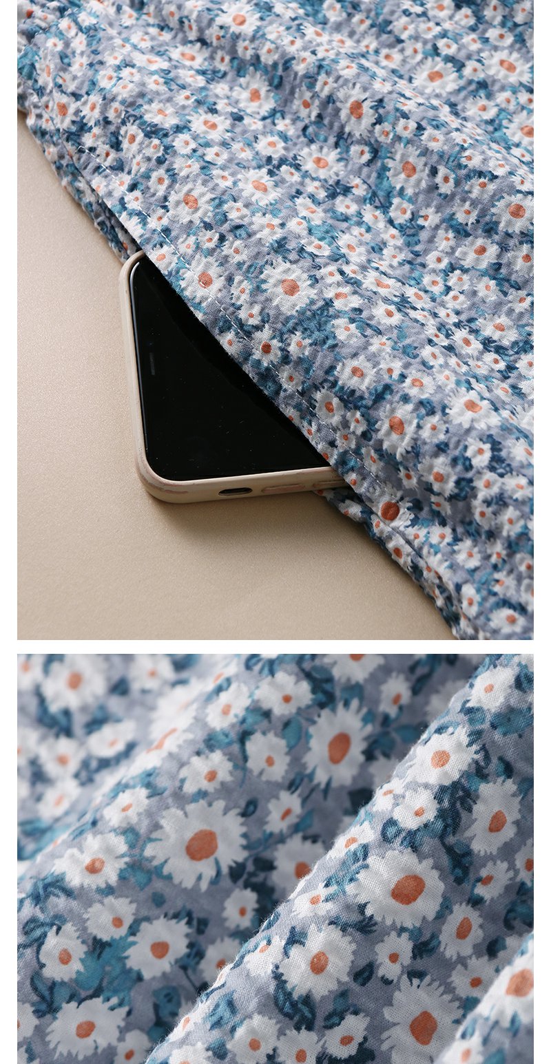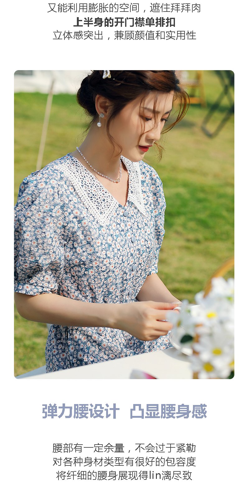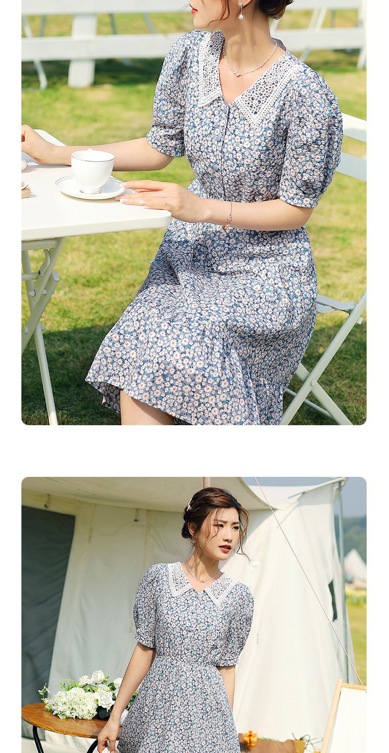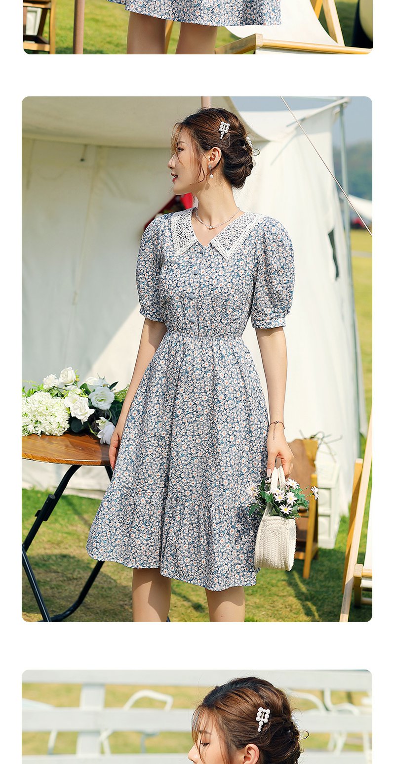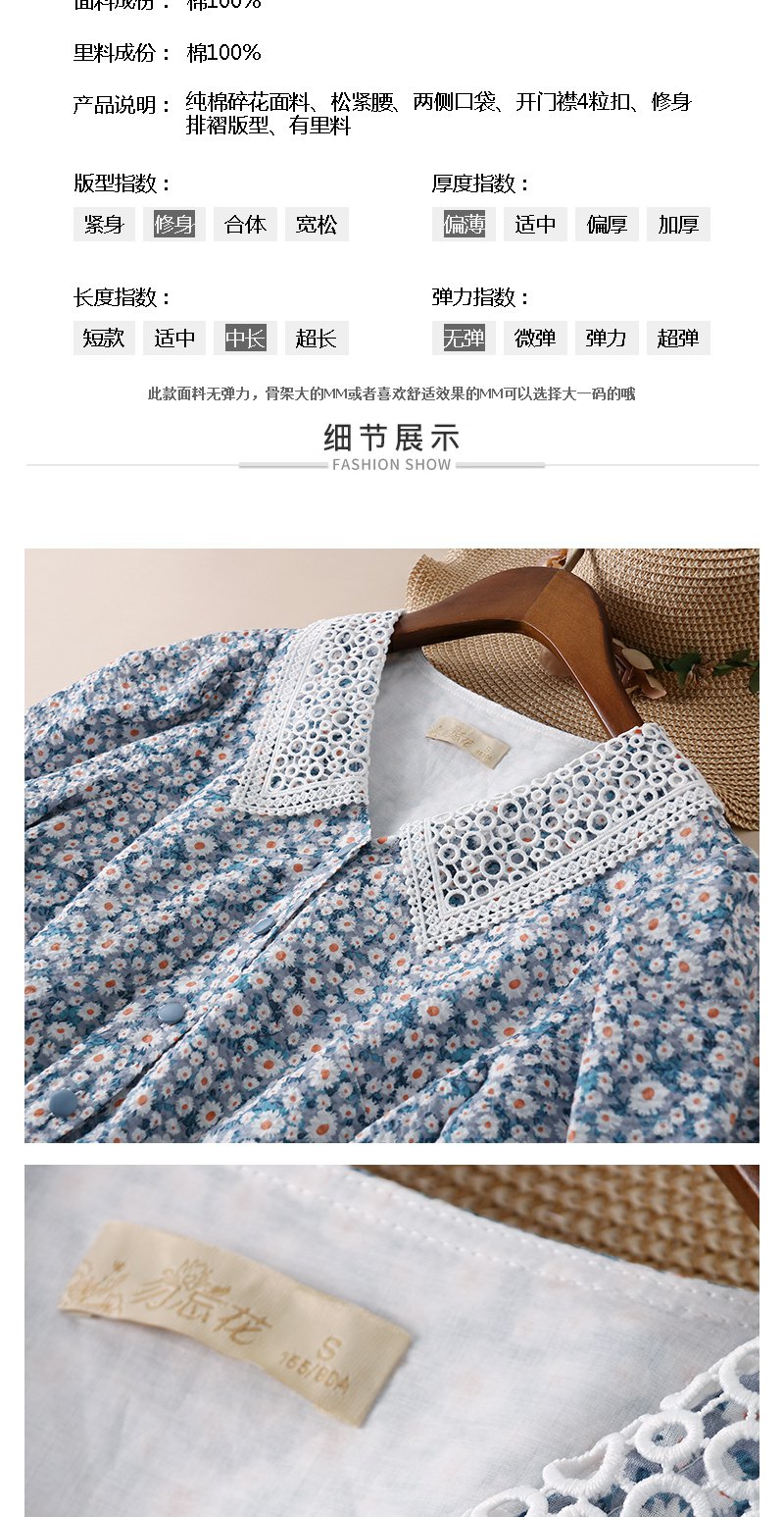 勿忘花纯棉碎花连衣裙女夏2024夏季新款气质娃娃领法式泡泡袖裙子