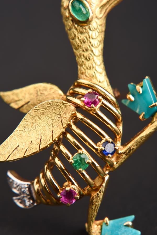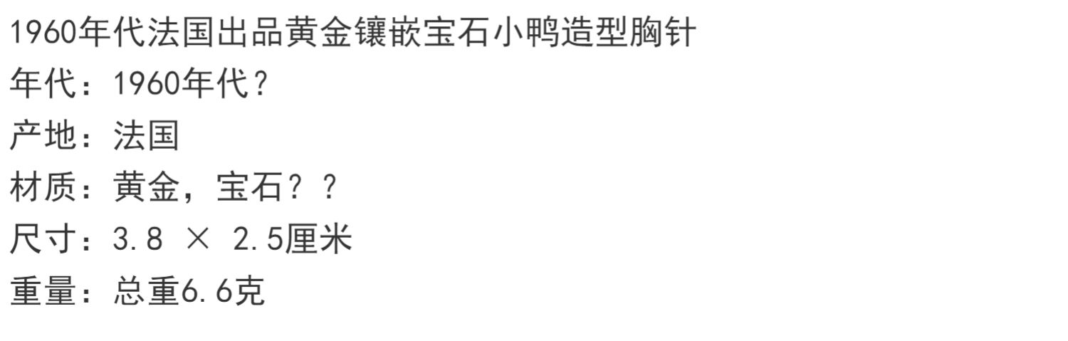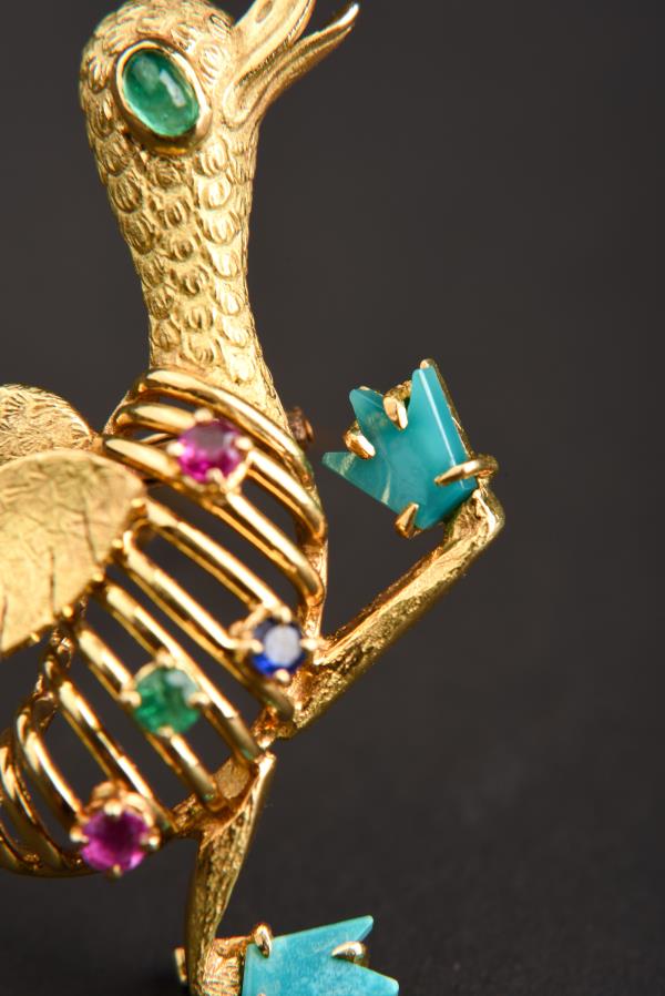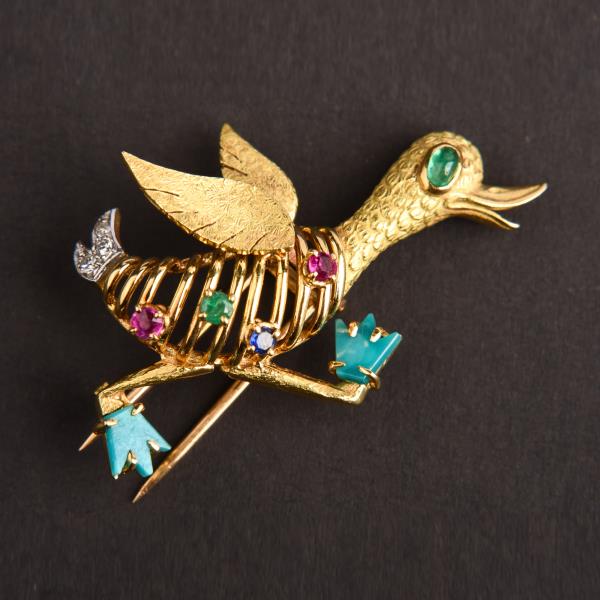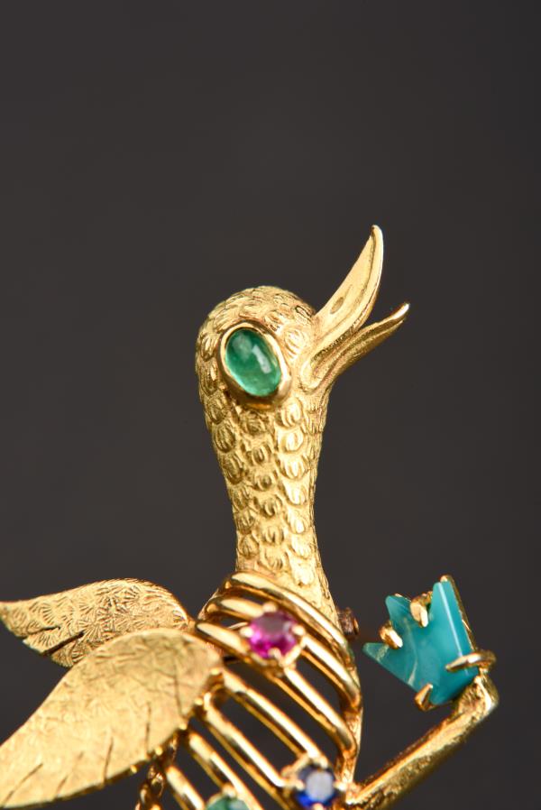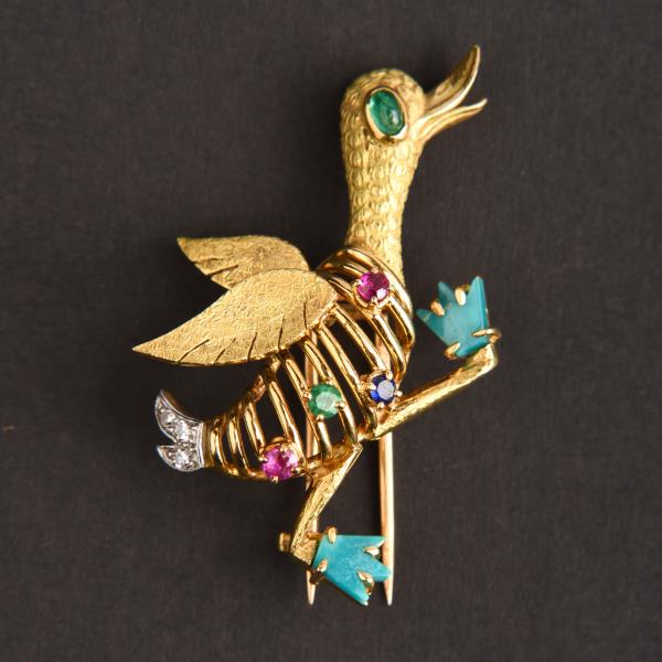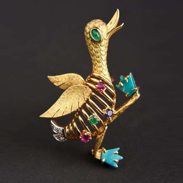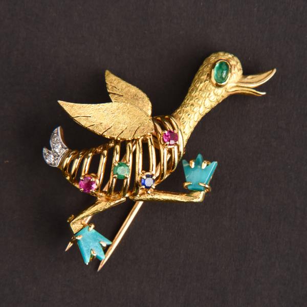 独角鹿西洋古董珠宝首饰法国黄金镶嵌宝石小鸭造型胸针