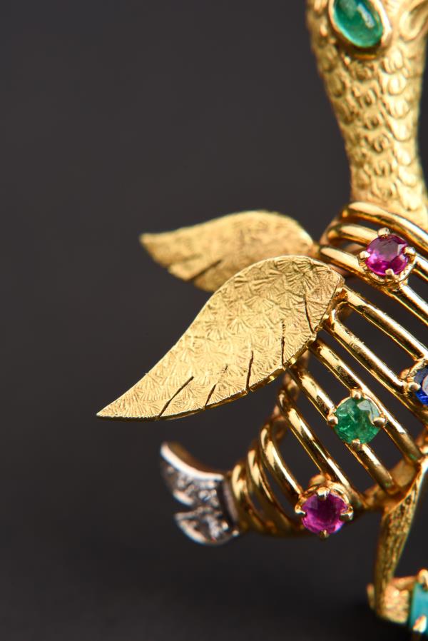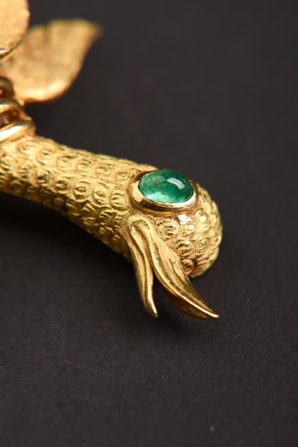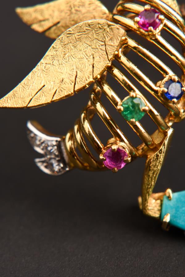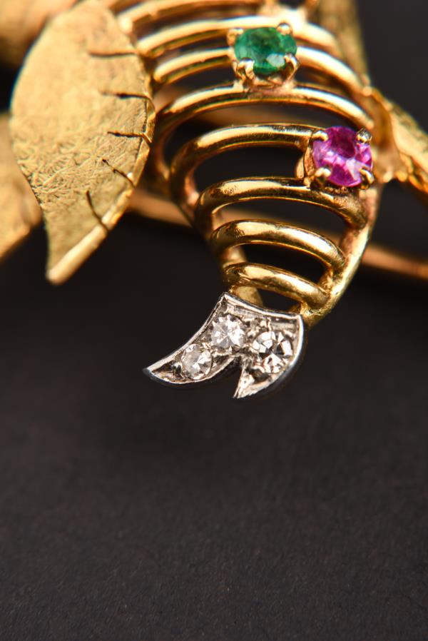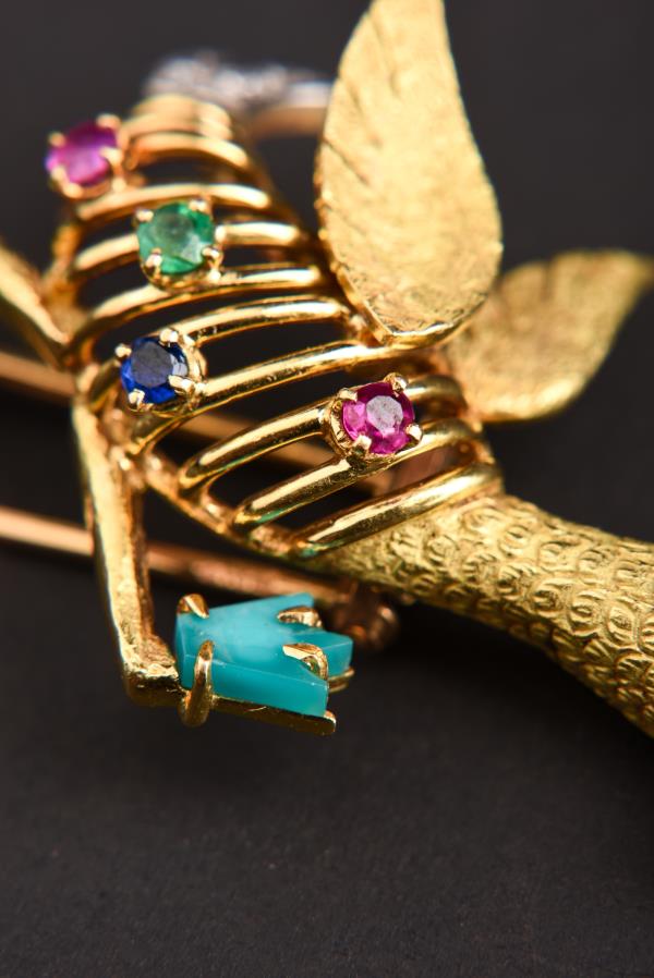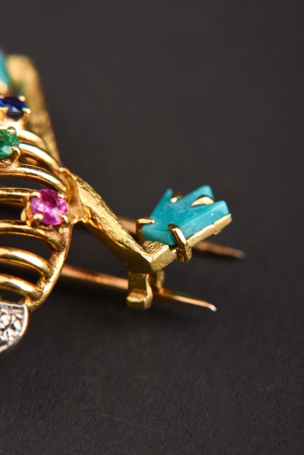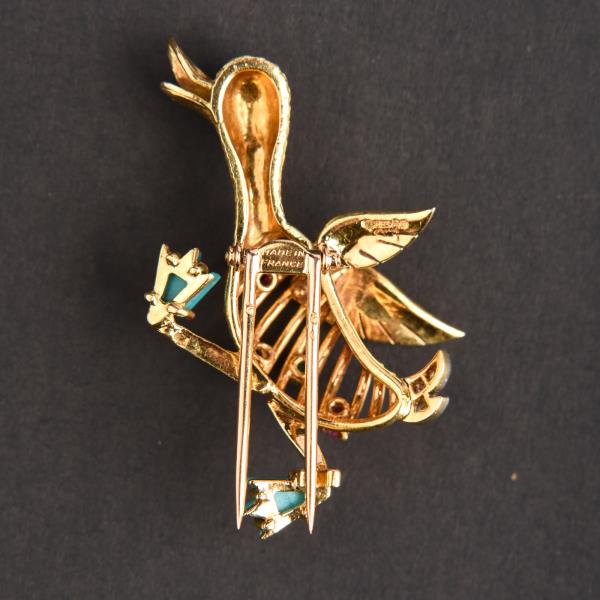 独角鹿西洋古董珠宝首饰法国黄金镶嵌宝石小鸭造型胸针
