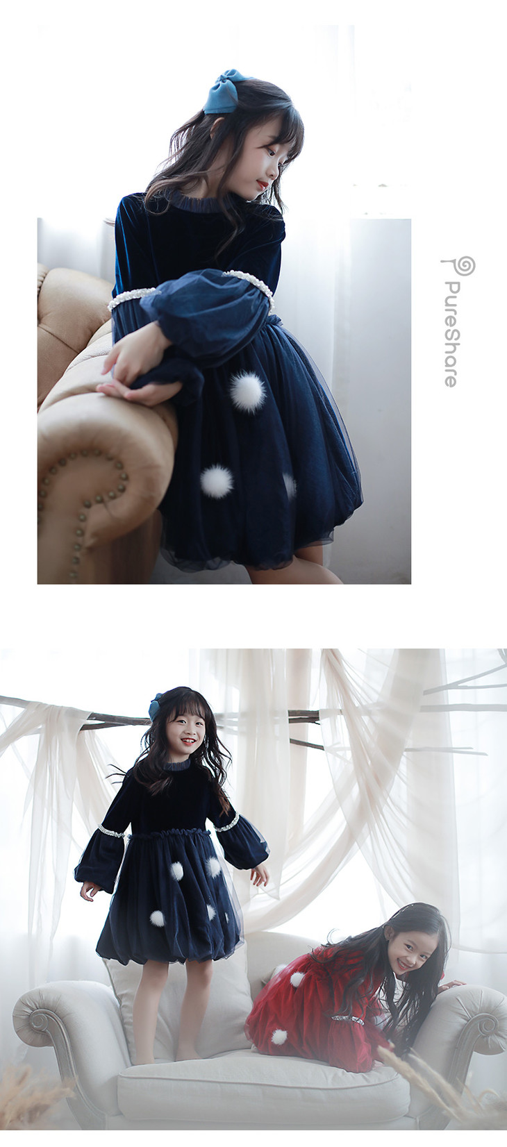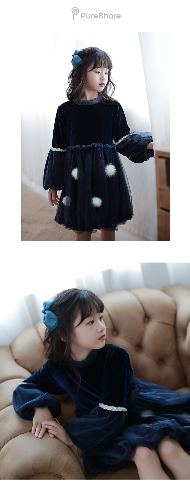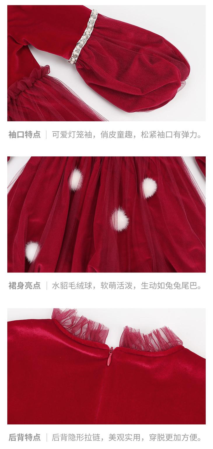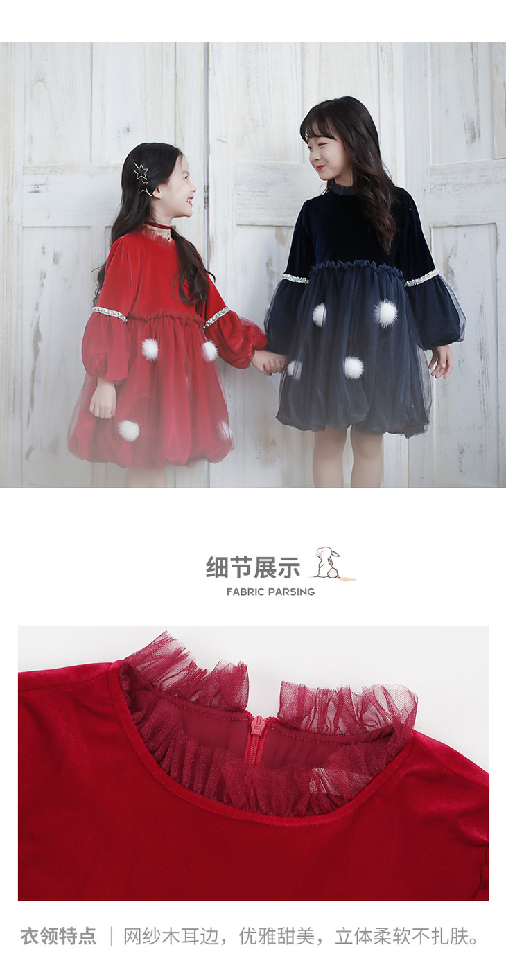 pureshare蓬纱馆 儿童公主裙女童长袖连衣裙冬装洋气宝宝礼服裙-宝石兔兔裙