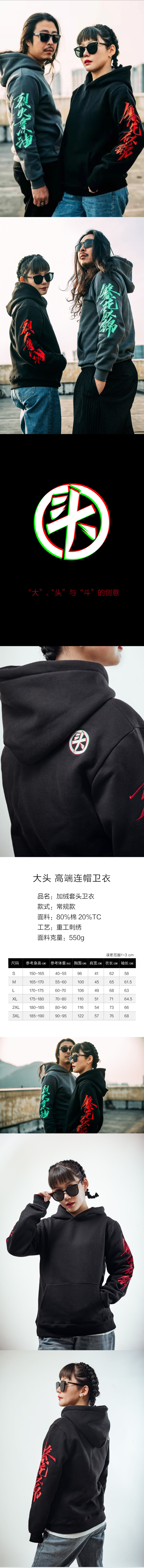 大头侃人 定制款战袍 男女卫衣 繁花似锦 烈火烹油 重工刺绣 男女同款 加绒加厚 550g重磅