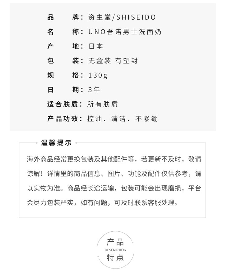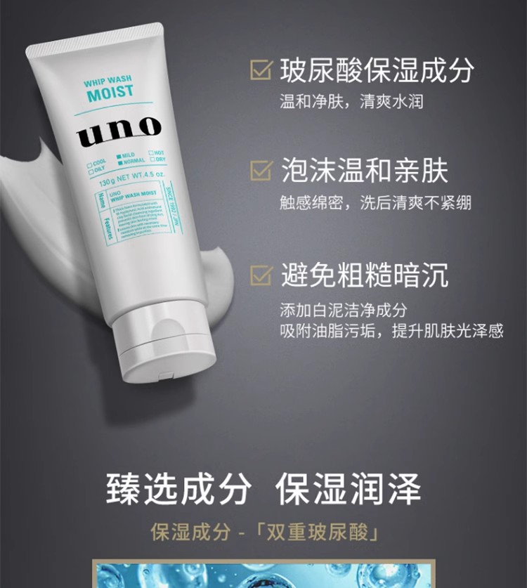 资生堂 吾诺UNO 男士洗面奶130g 清洁保湿