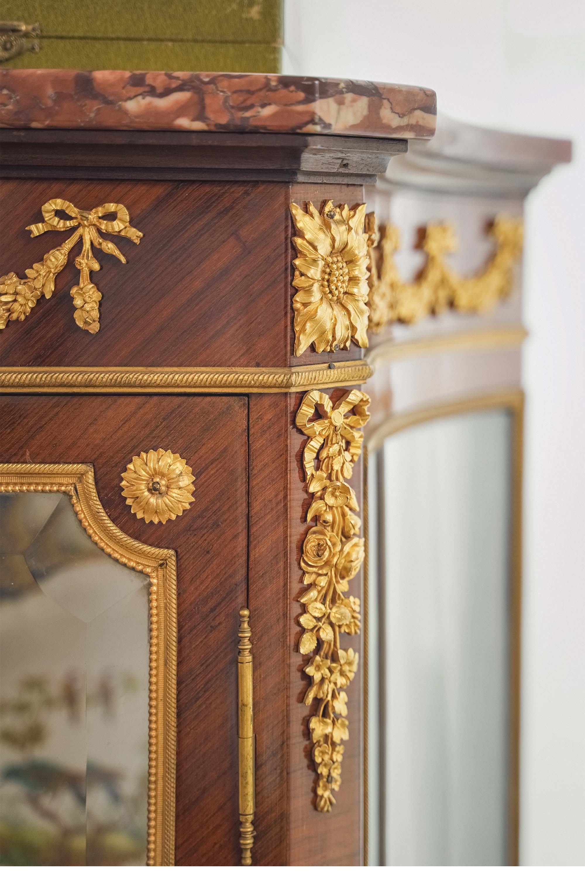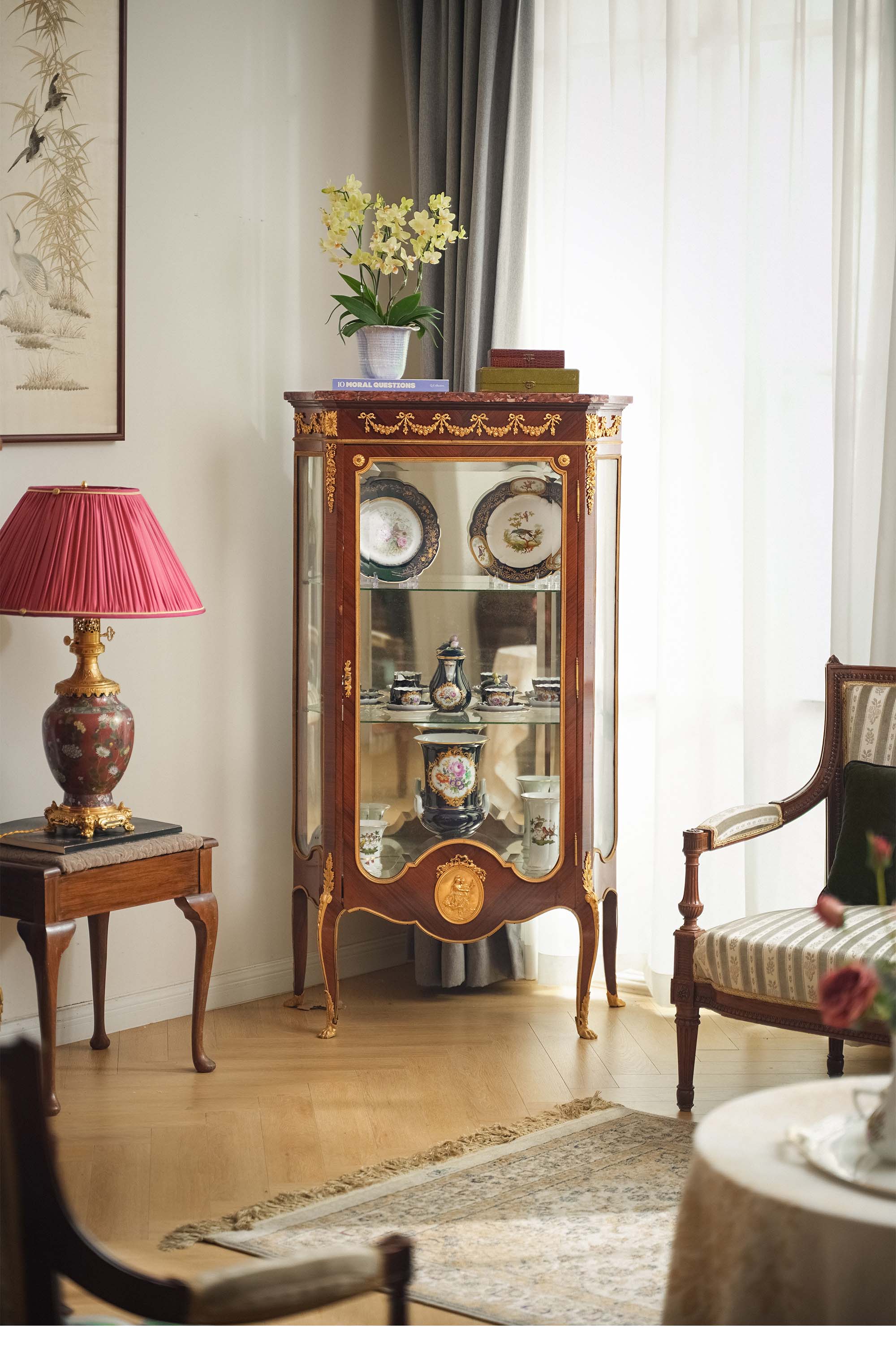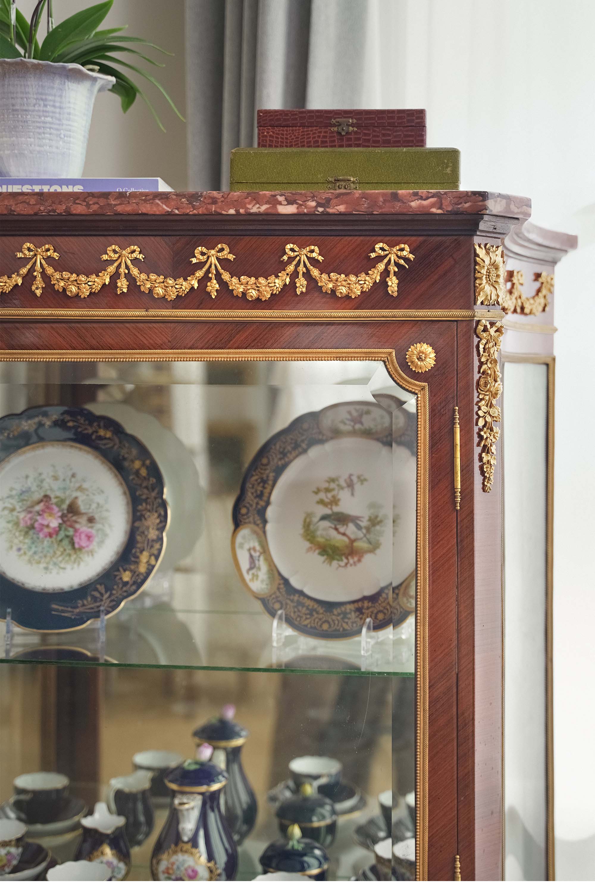 1850-1870年代法国出品路易十六风格铜鎏金精雕嵌大理石台面装饰实木收藏家首选玻璃展柜酒柜