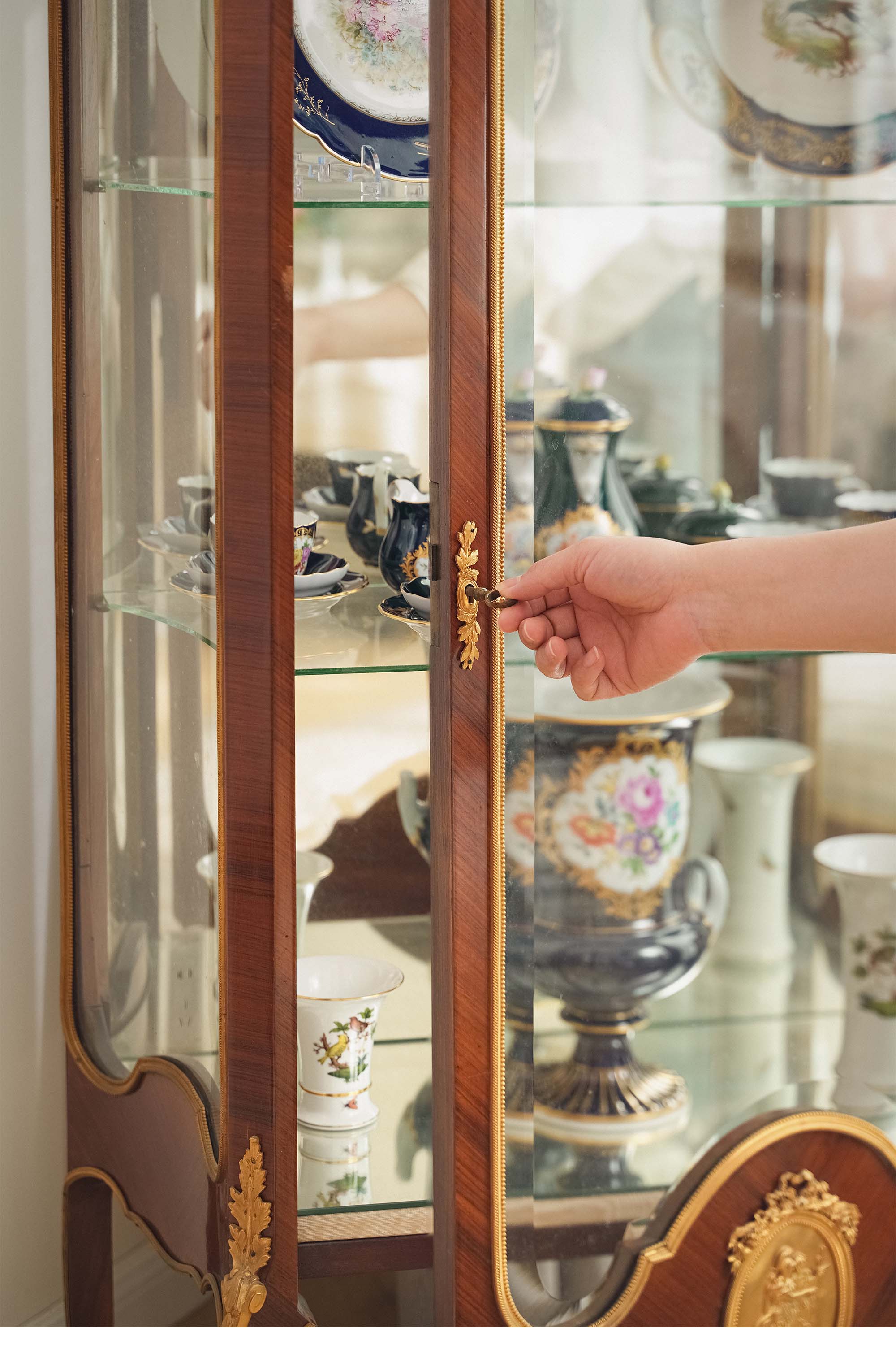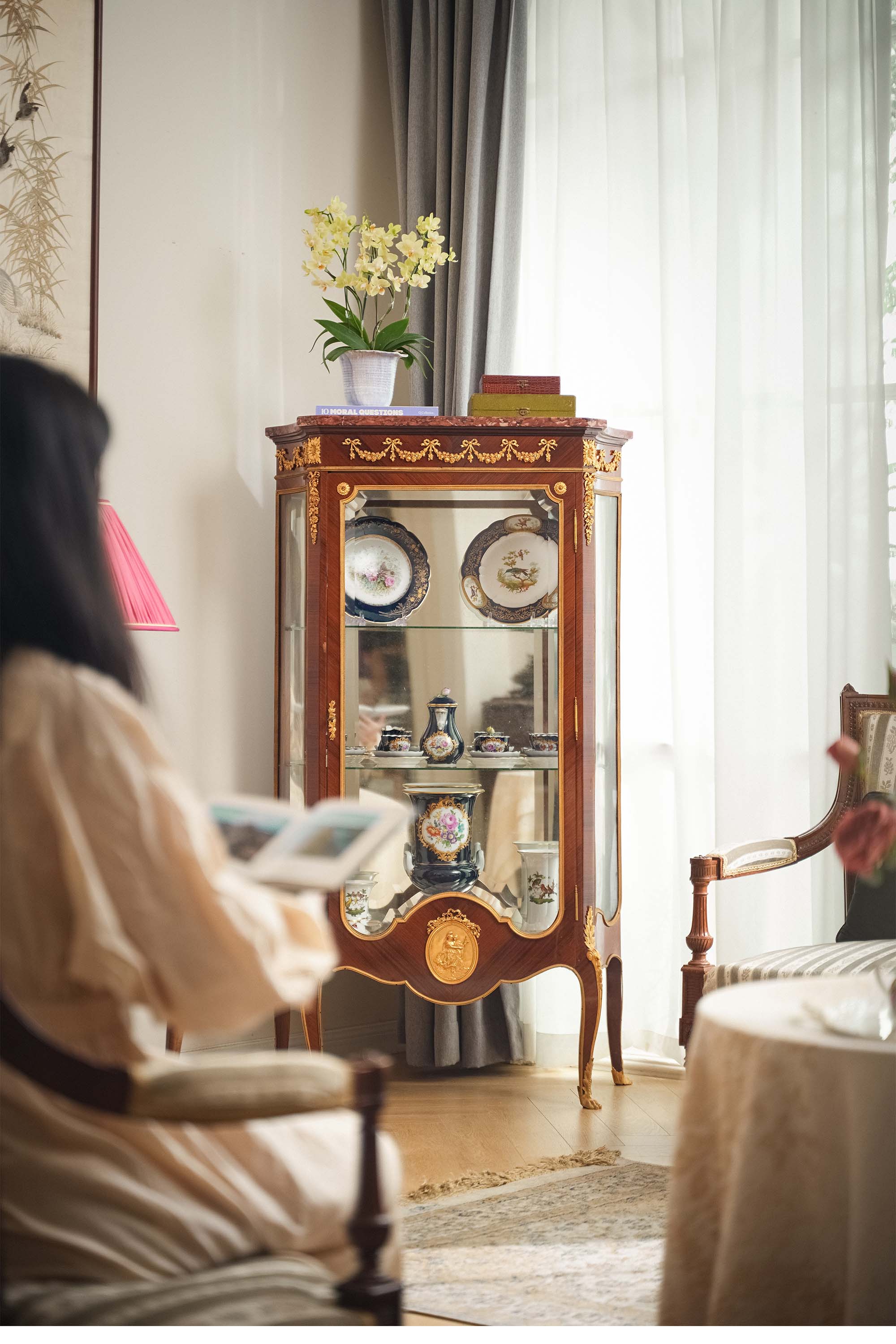 独角鹿西洋古董 古董家具 路易十六风格古典人物花蔓主题铜鎏金精雕嵌大理石台面装饰实木玻璃柜酒柜