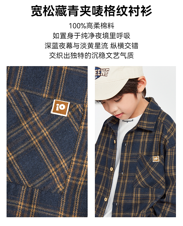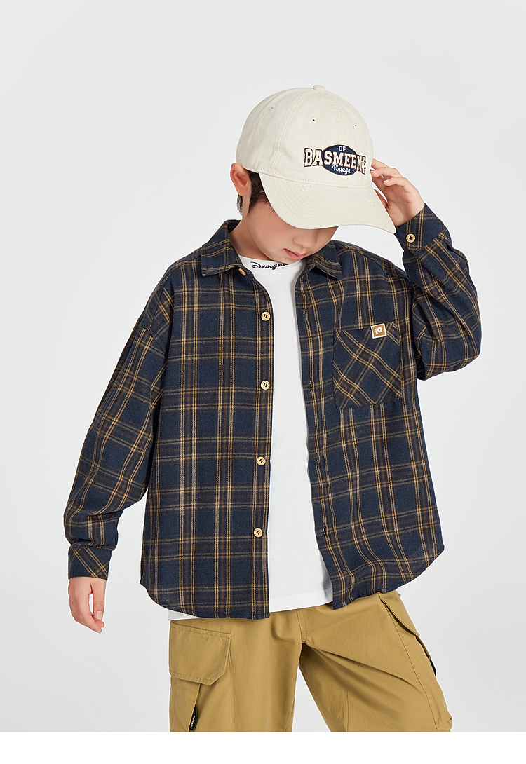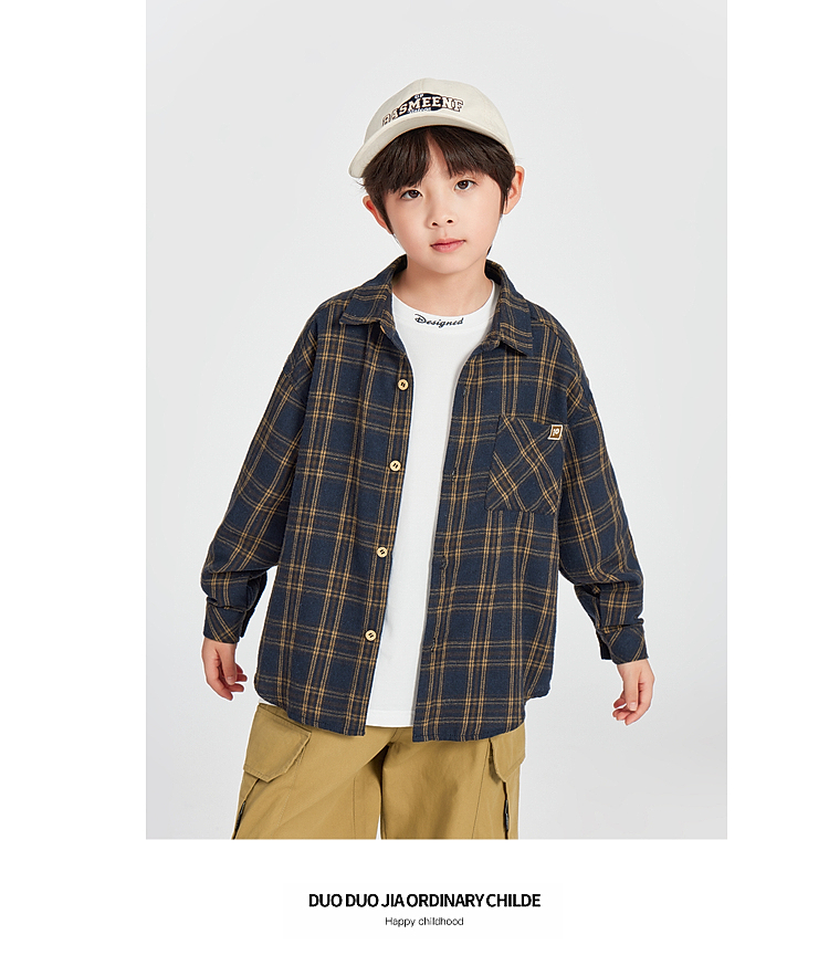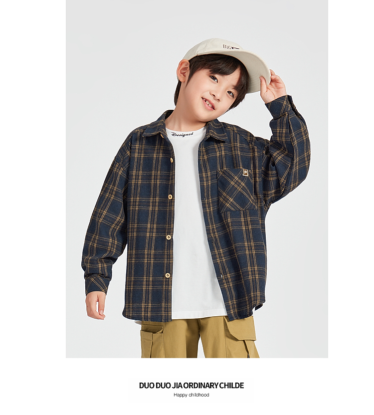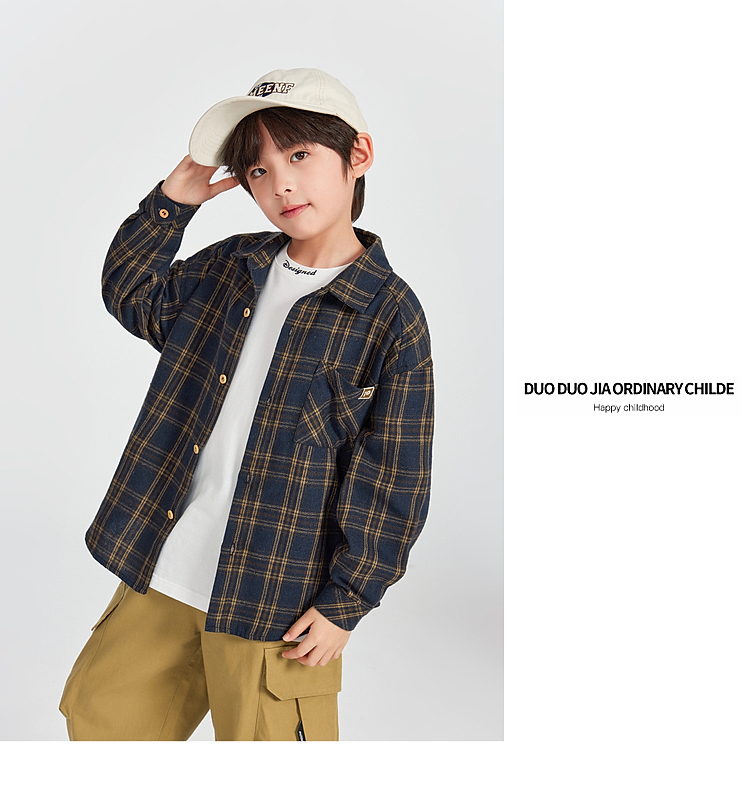 【团购价69.9】多多家男童衬衫纯棉2025春秋新款儿童中大童洋气格纹长袖衬衣外套10268