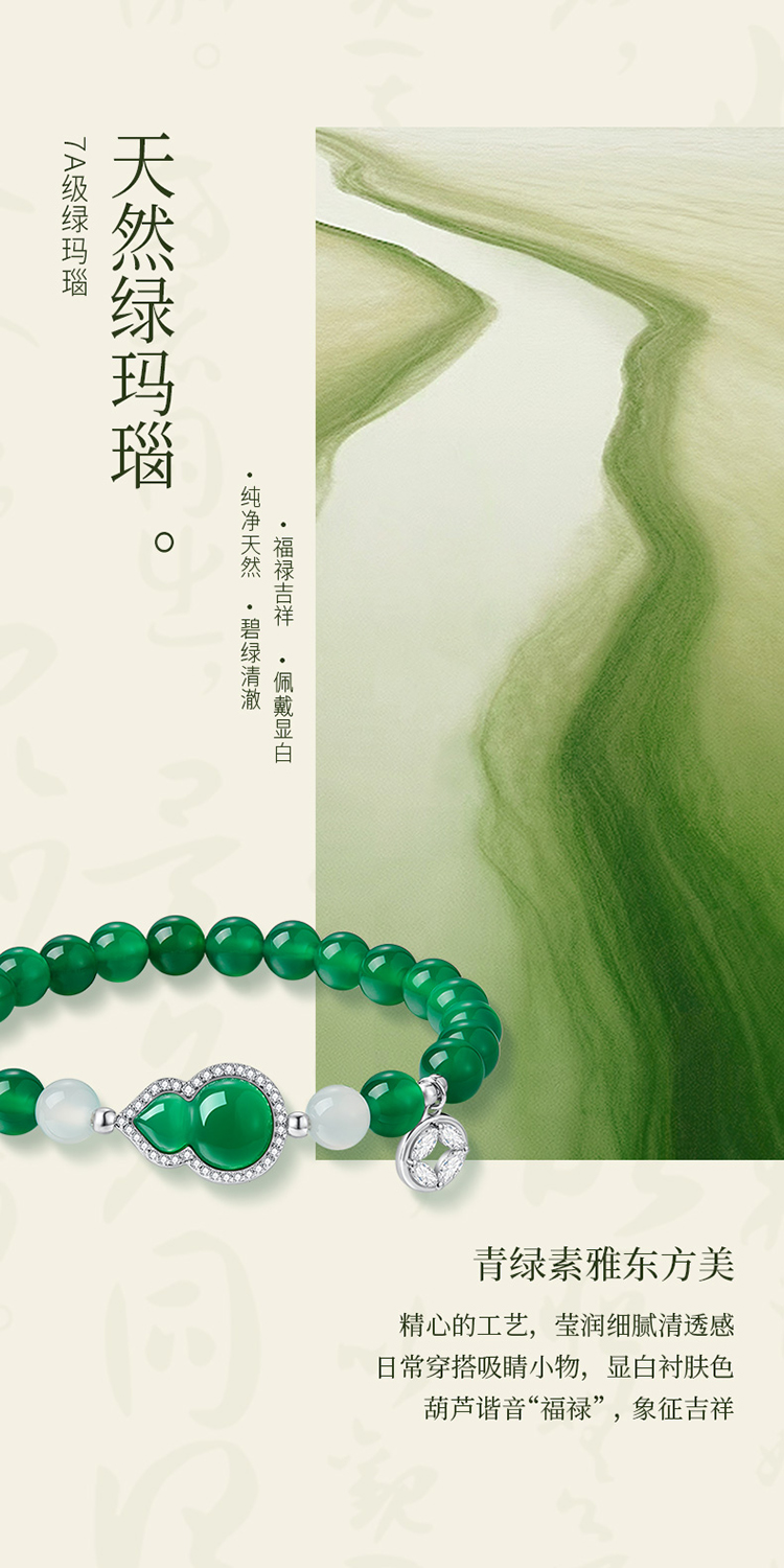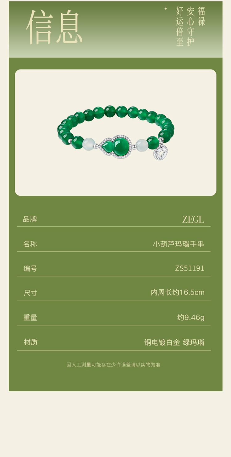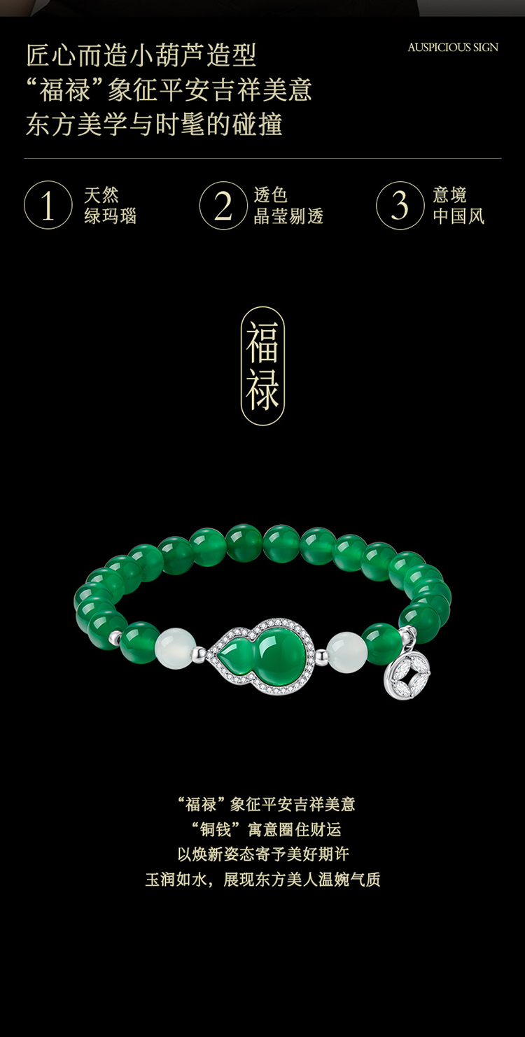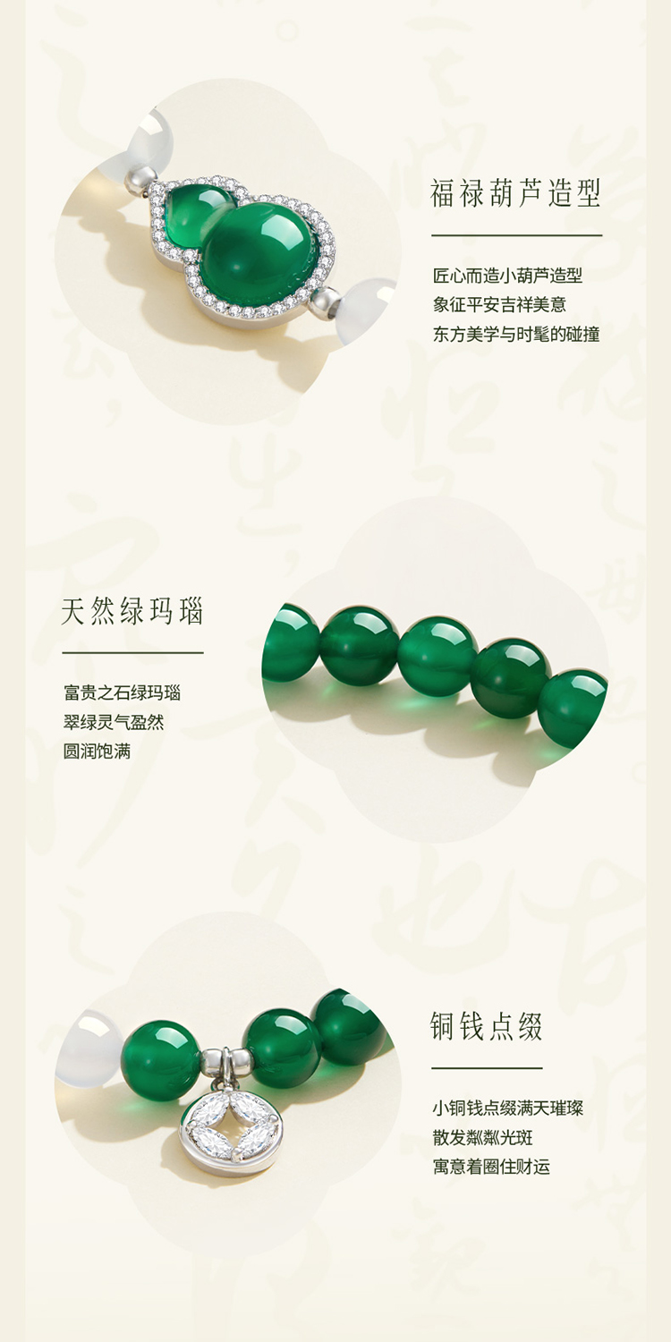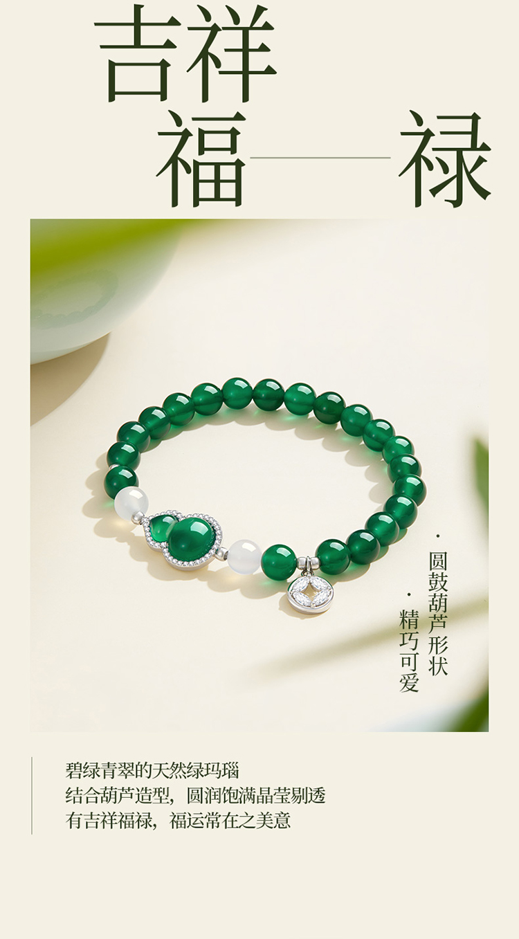 ZEGL设计师母亲节礼物绿玛瑙手串女款2024新款中式小葫芦手链手饰