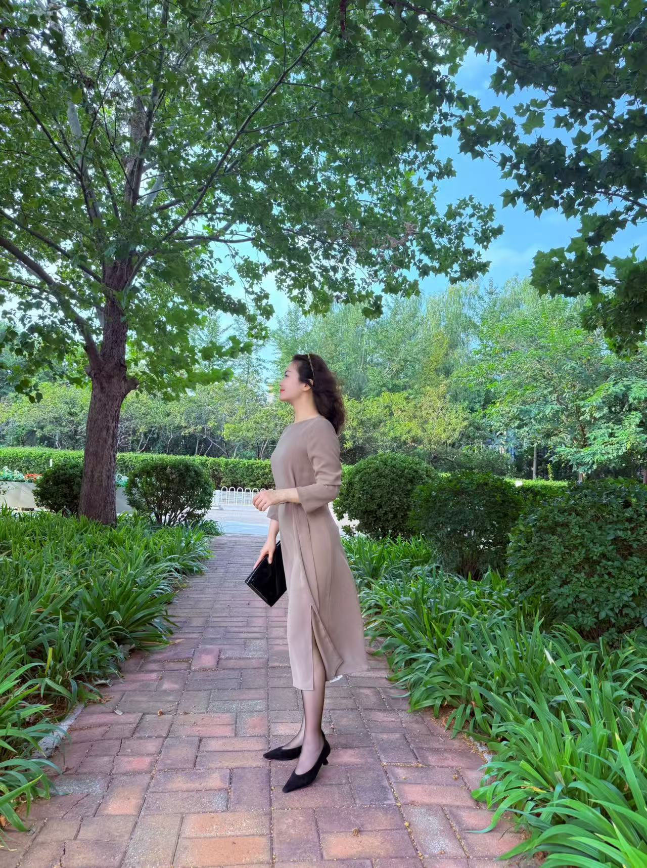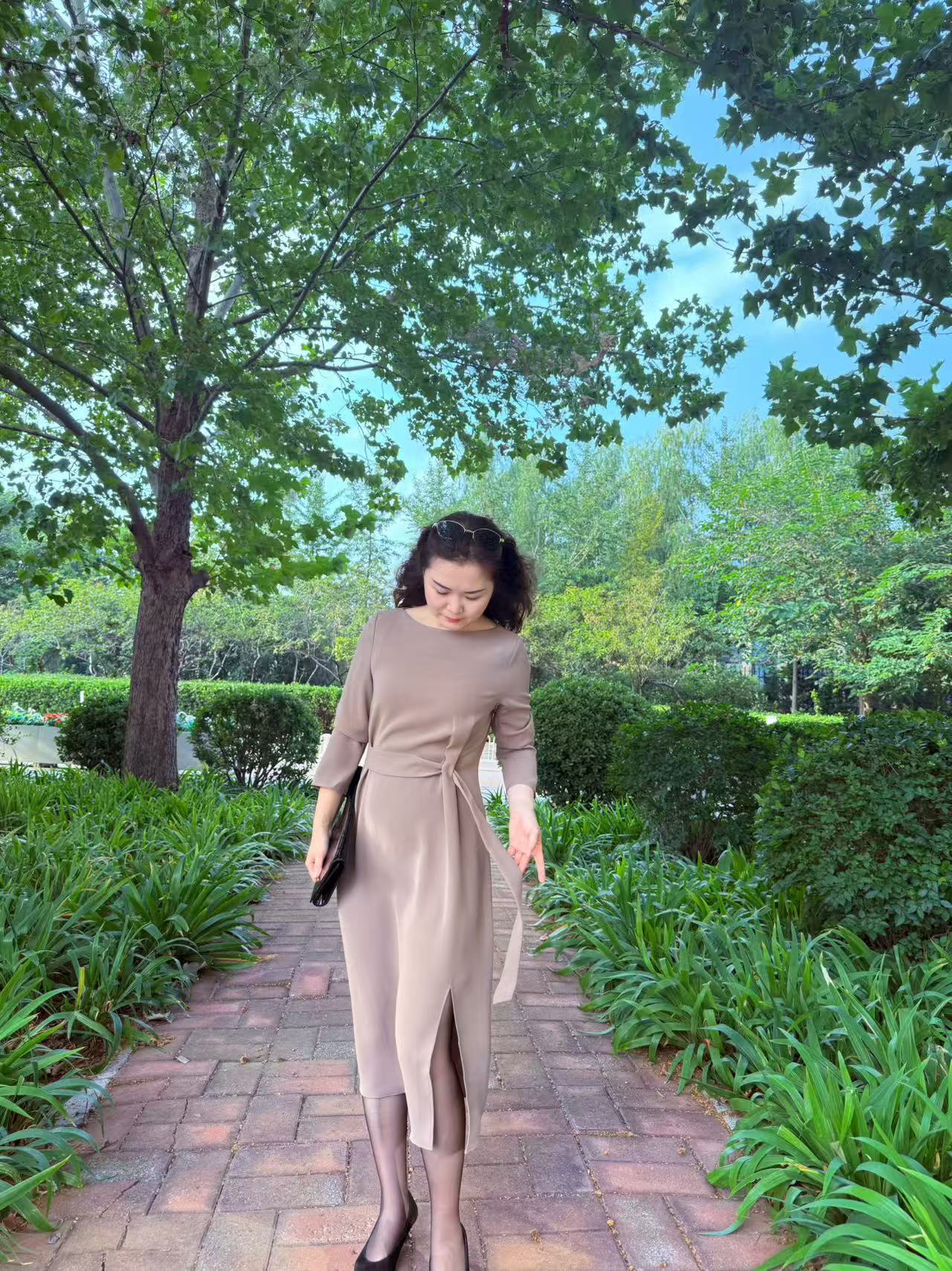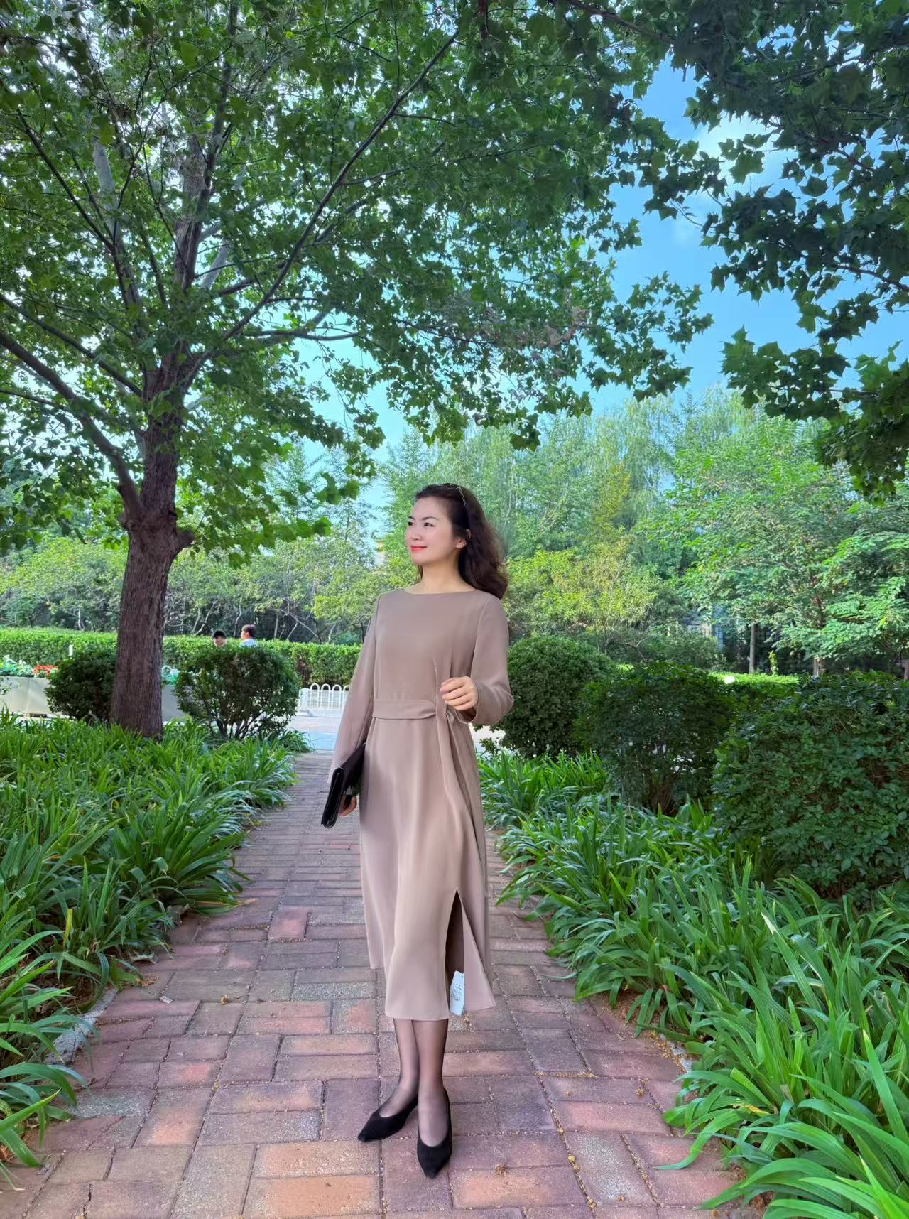 缎面刺绣开衩半裙