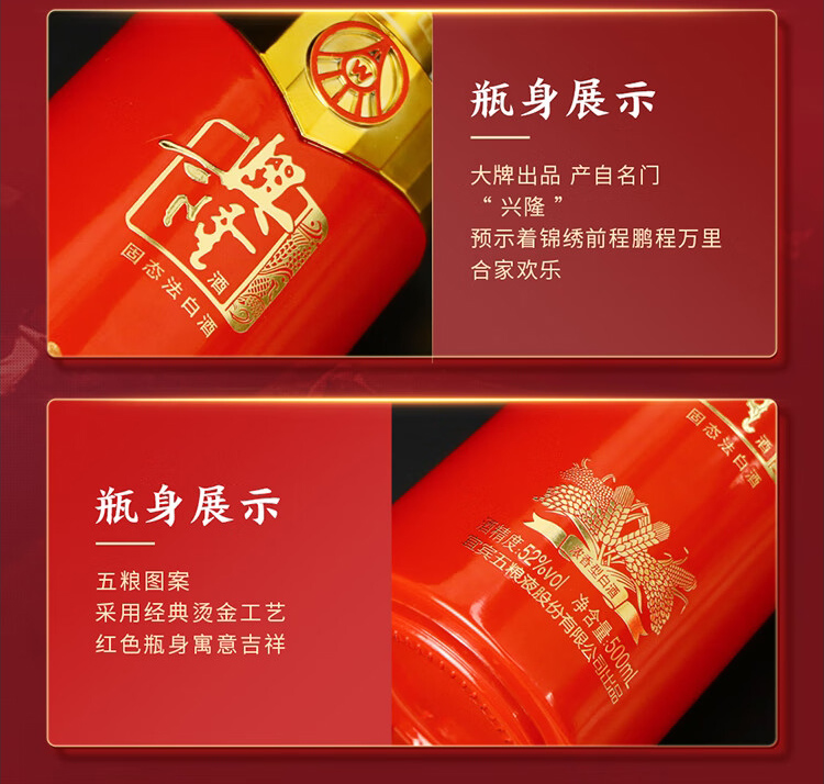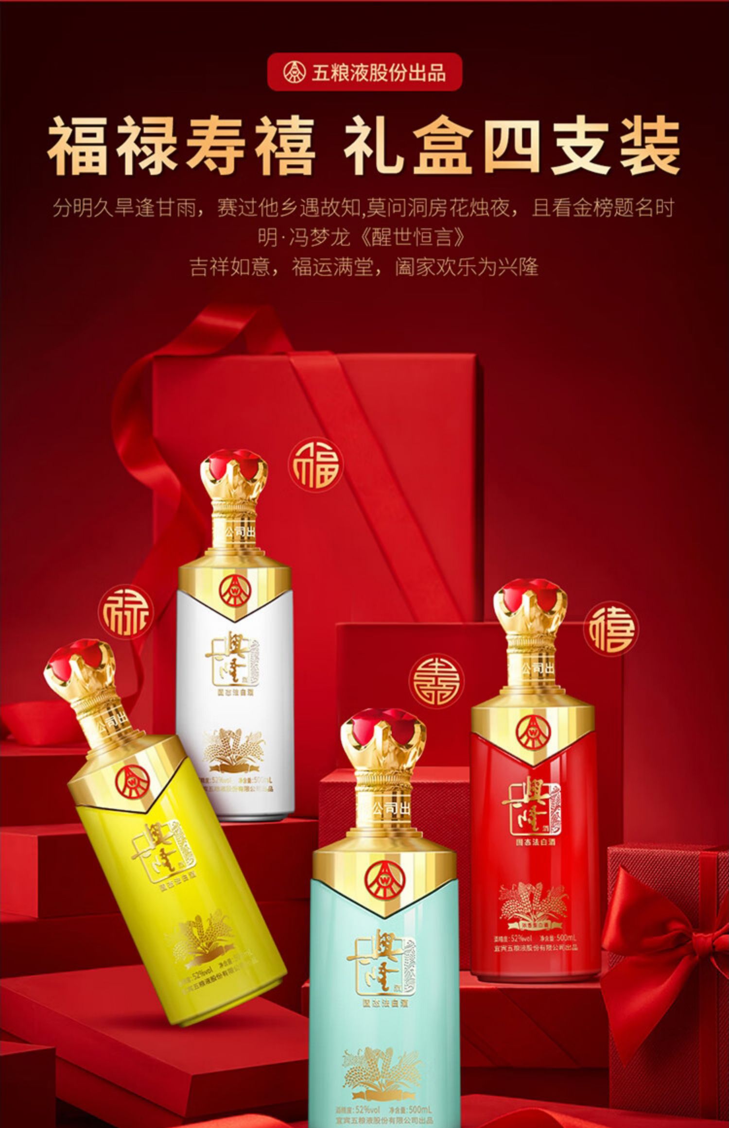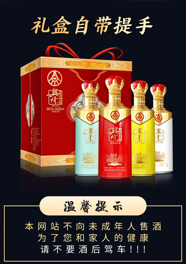 五粮液 兴隆吉祥如意52度500ml*4 浓香型白酒 礼盒装