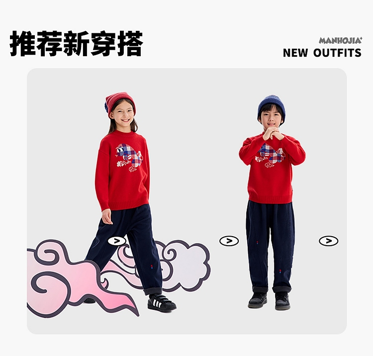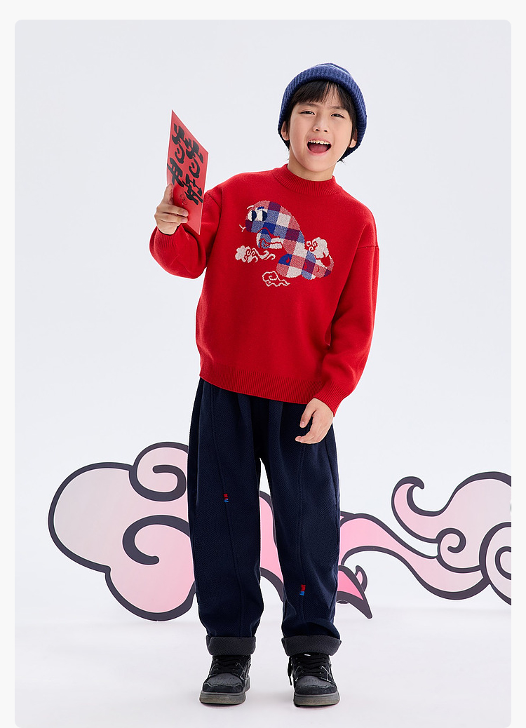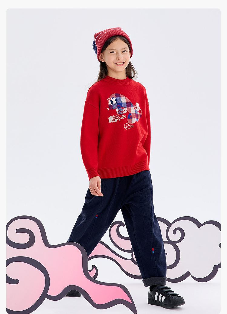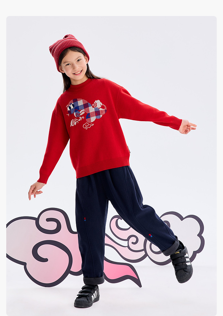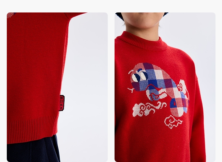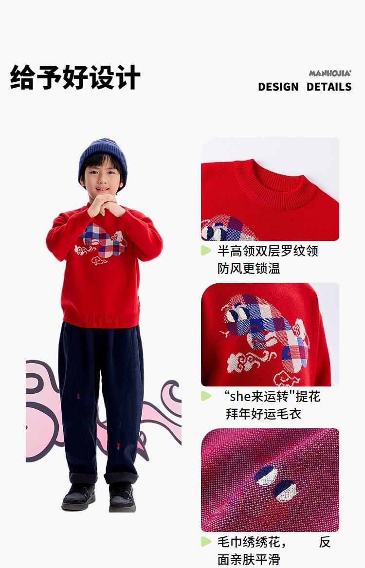 【“桃”个好彩头】漫画家24冬6%绵羊毛混纺新年好运拜年毛衣
