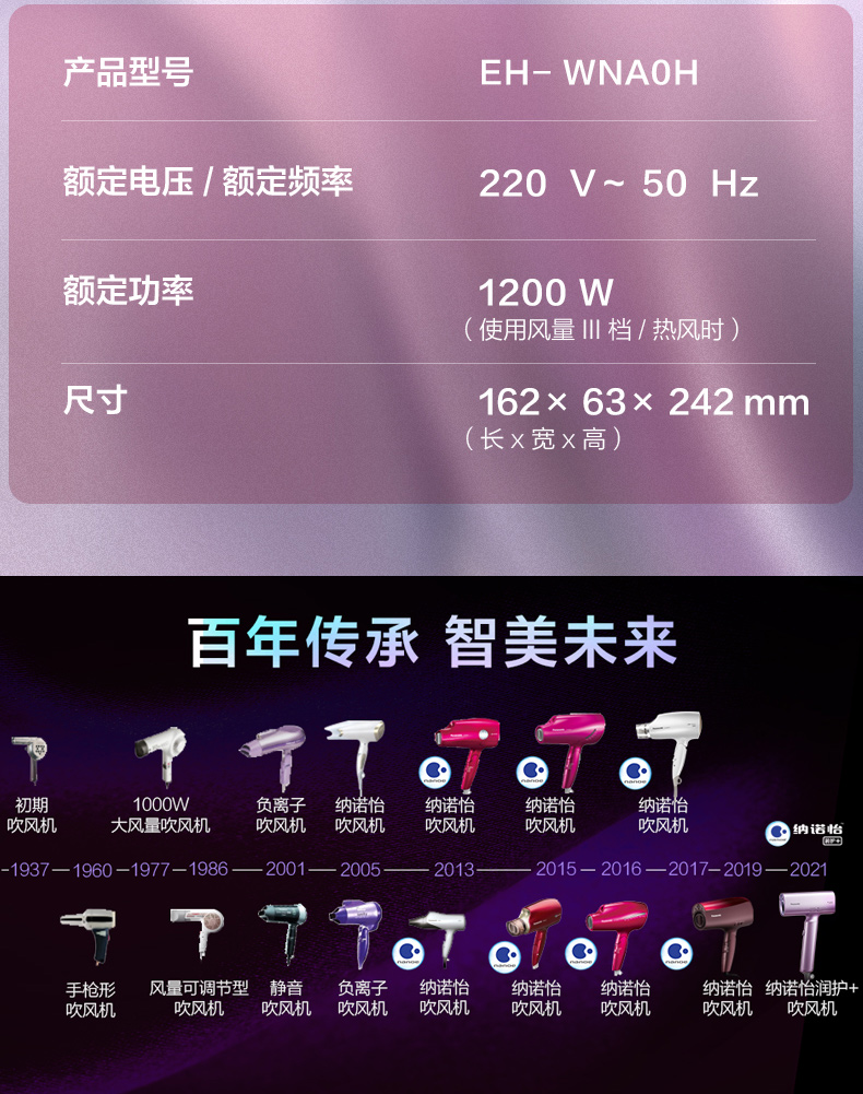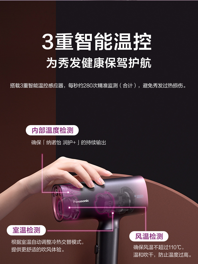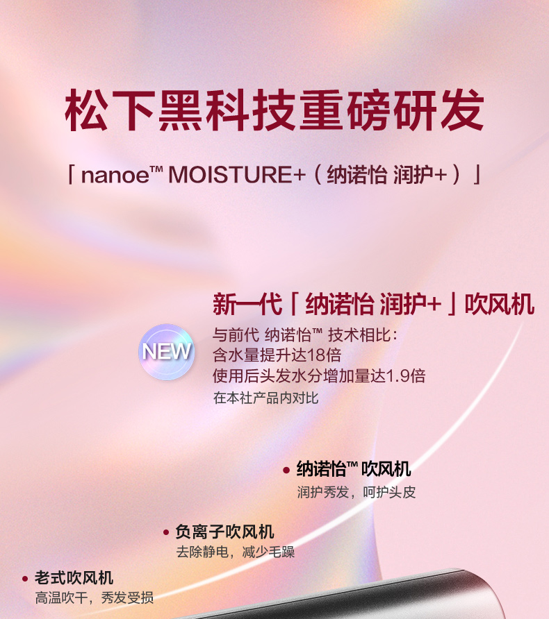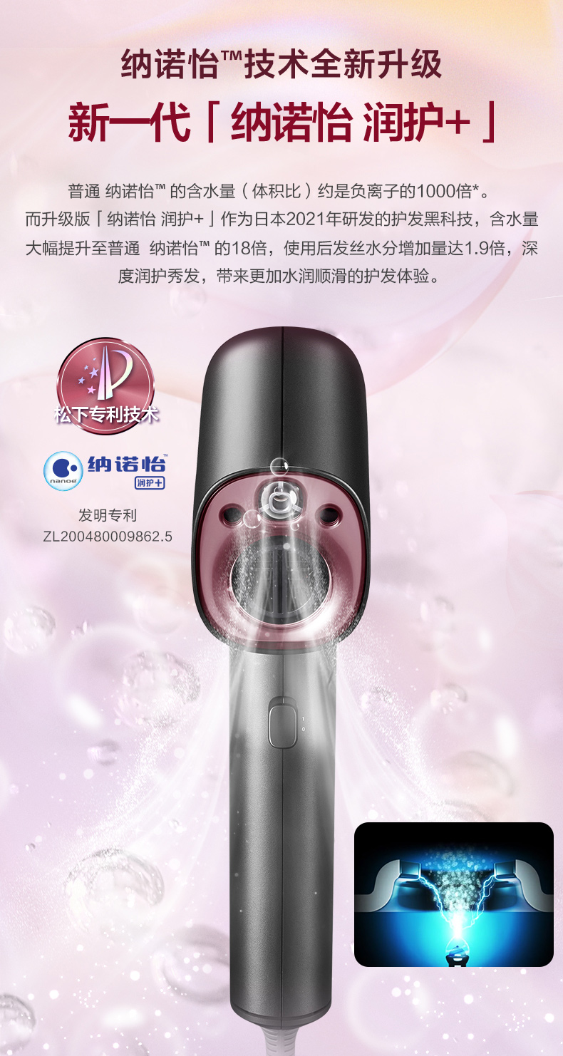 松下(Panasonic)电吹风机 家用 高速马达 高渗透水离子吹护机 全新吹护系列 EH-NA0H-K405 黑色