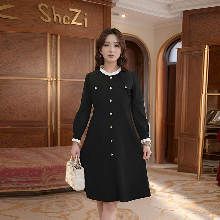 8/16奢姿大码女装2024秋季丝绒时尚连衣裙胖妹妹纽扣装饰小香风裙子9943853571