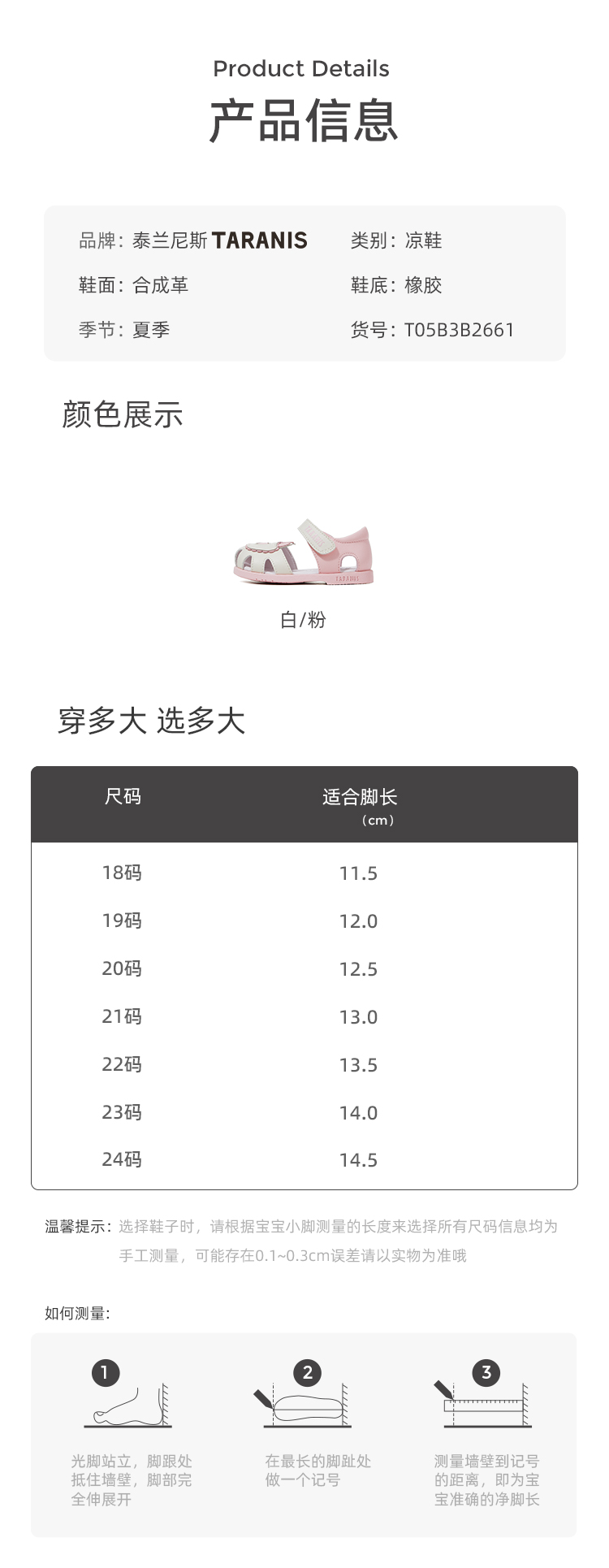 泰兰尼斯0-3岁女童透气软底小玛丽包头学步凉鞋【夏款二阶段】