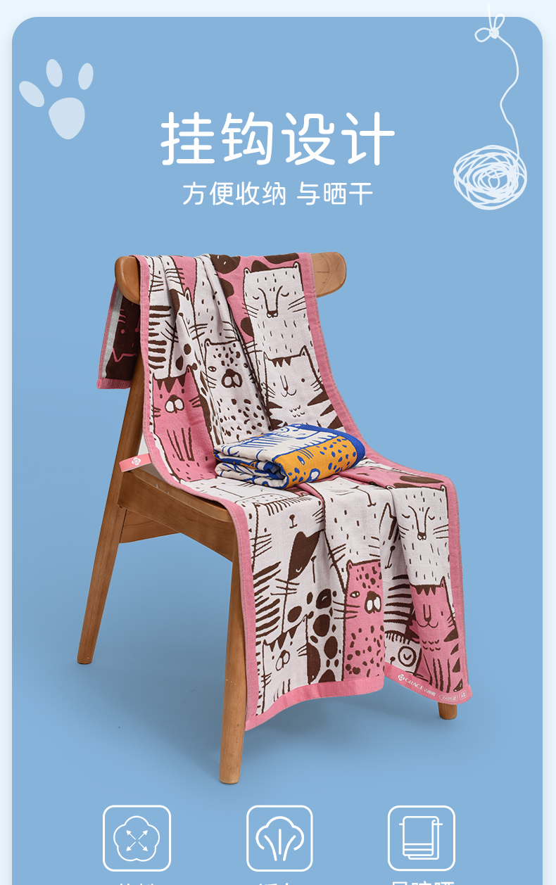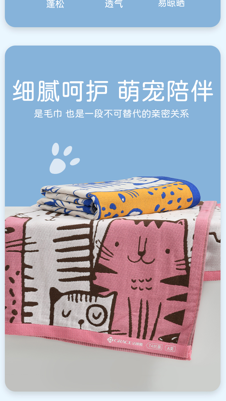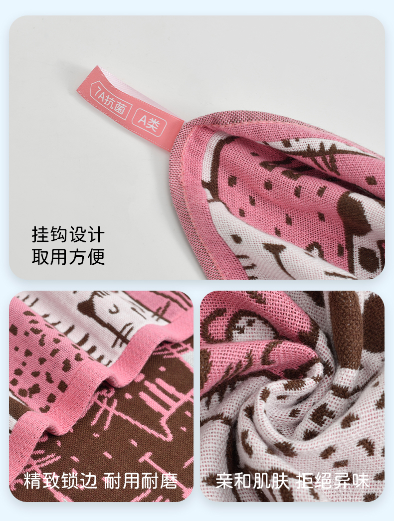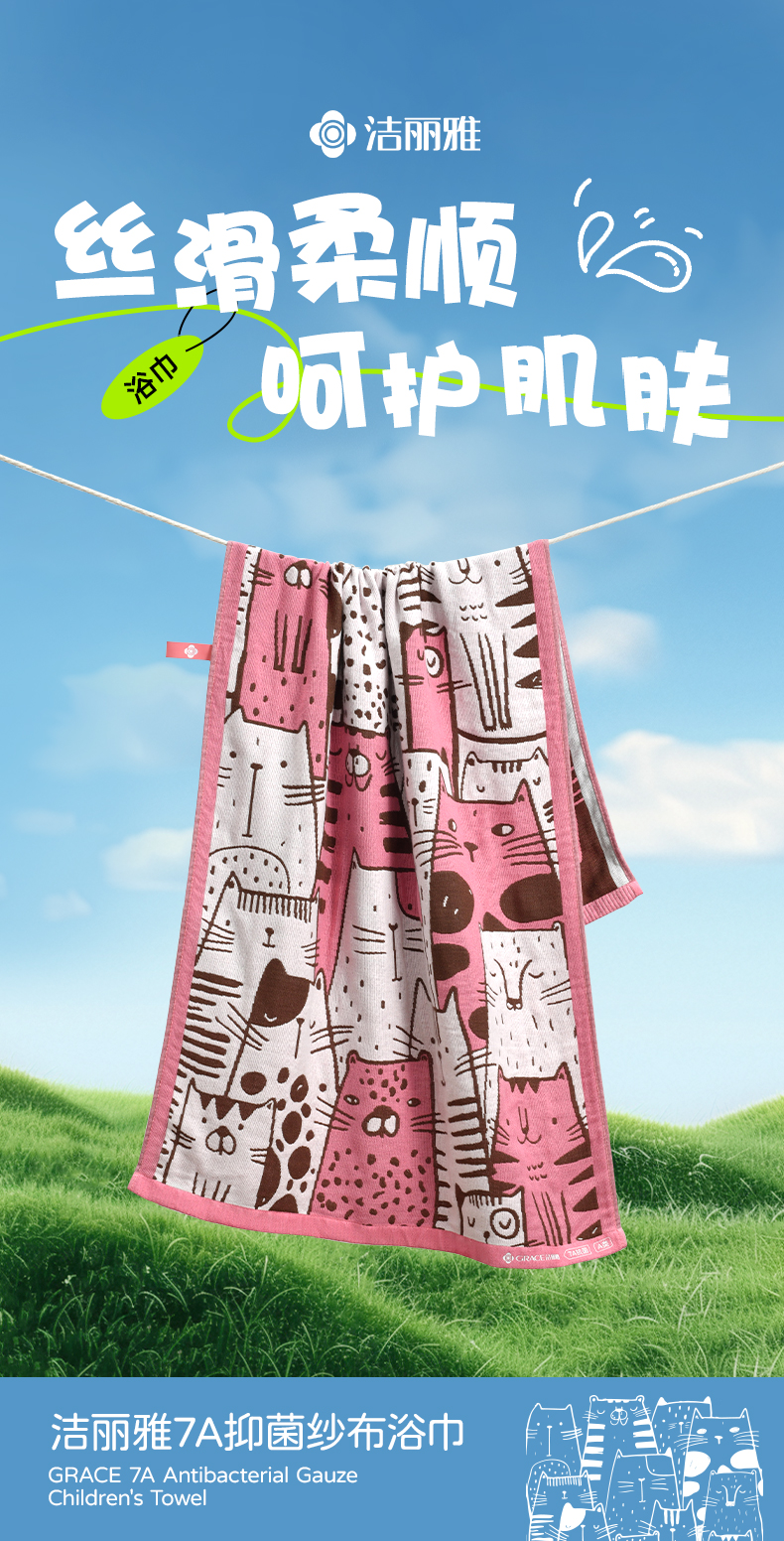 洁丽雅儿童纱布浴巾女卡通7A抗菌A类儿童棉质吸水亲肤快干