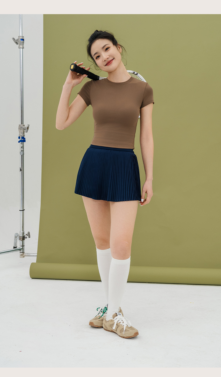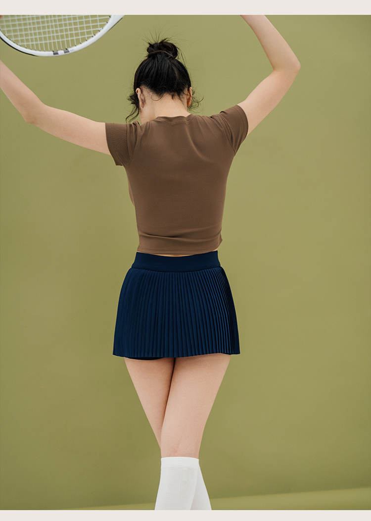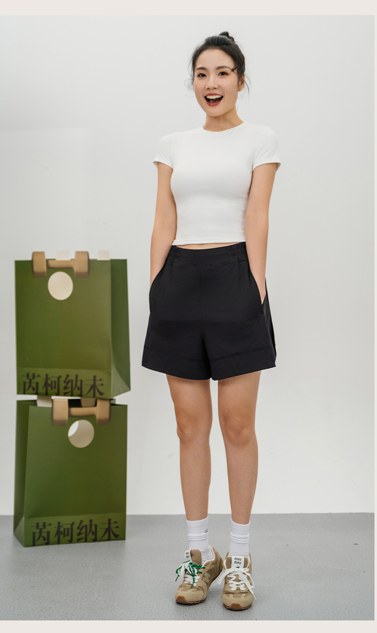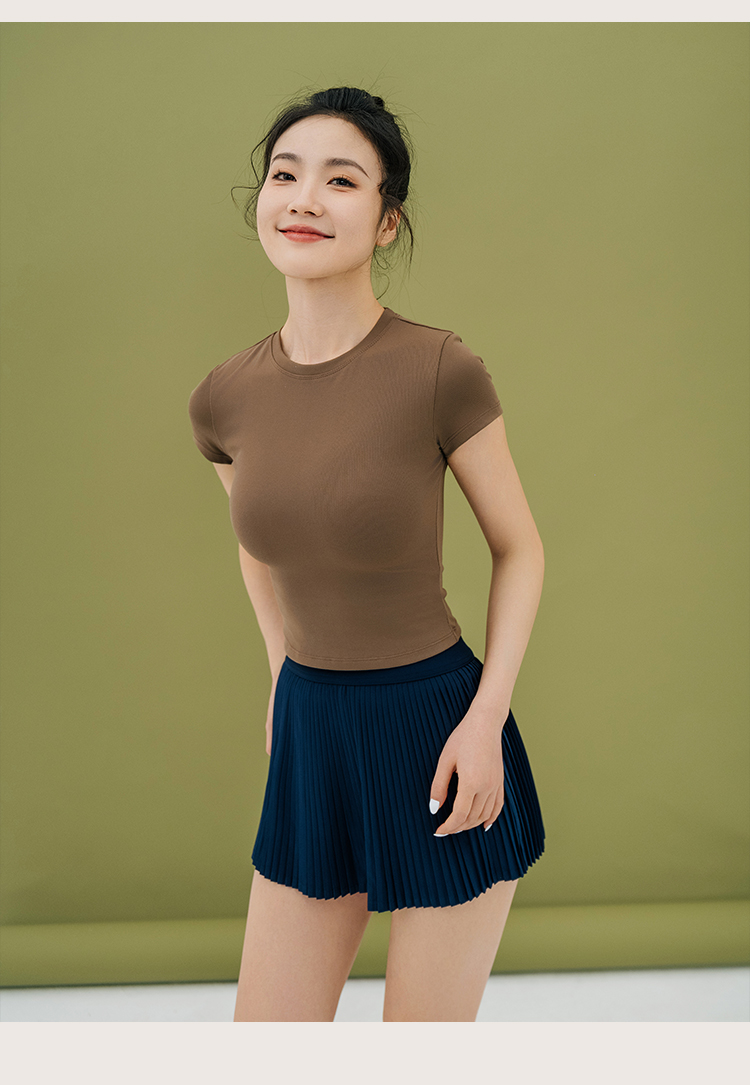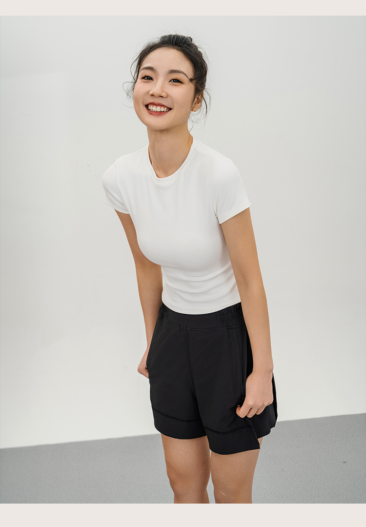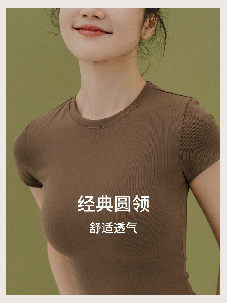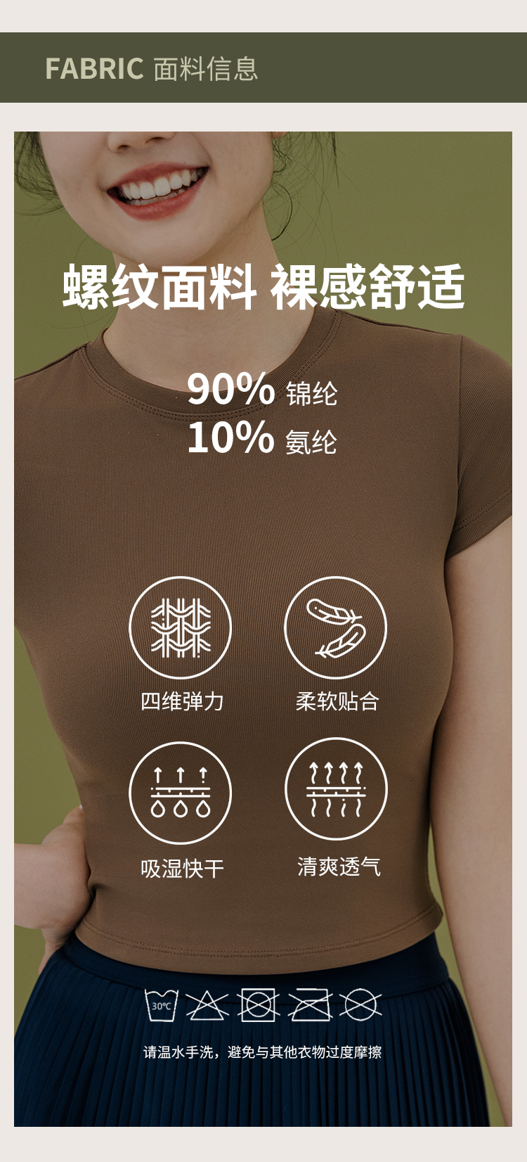 L RECNAVA 细螺纹四面弹短款修身运动短恤 小个子显瘦显高露腰T