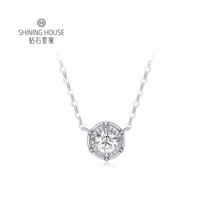 【甑选钻饰】【门店同款】钻石世家 18K金钻石项链 车花片六爪镶嵌钻石项链(预计3天发货)