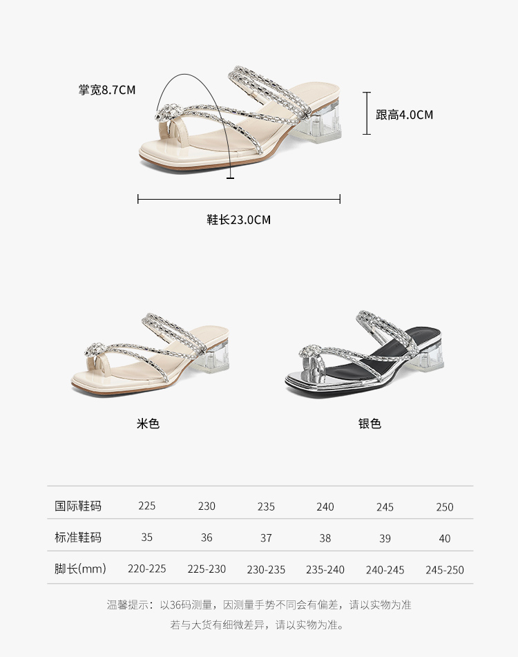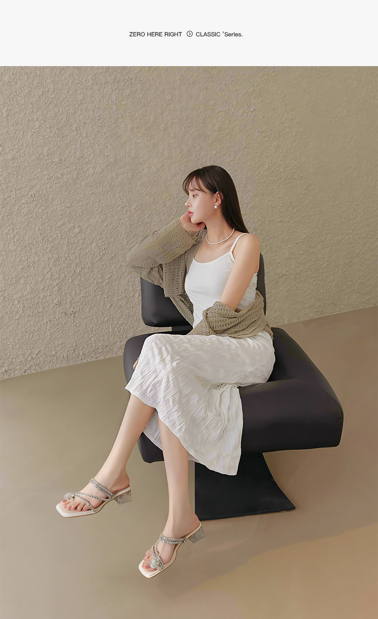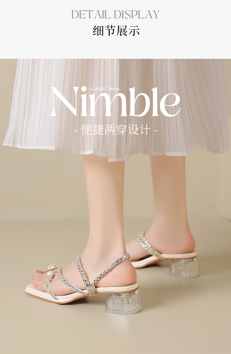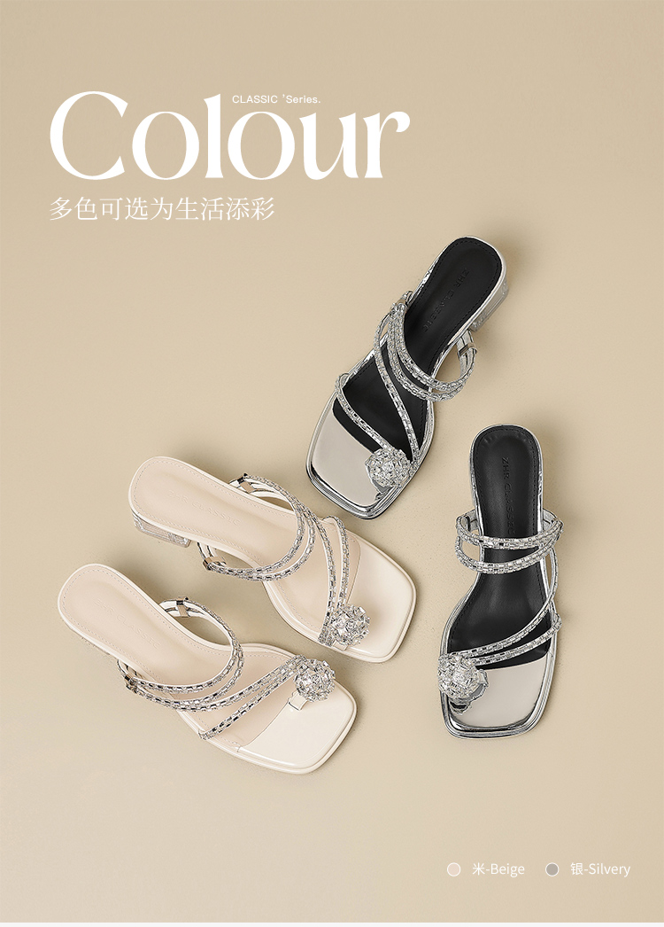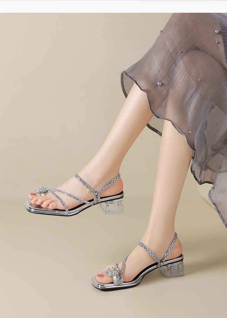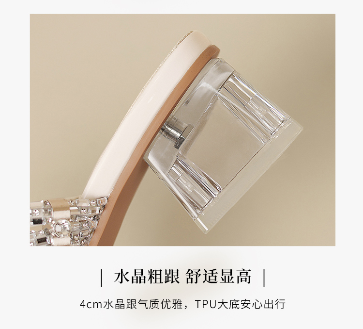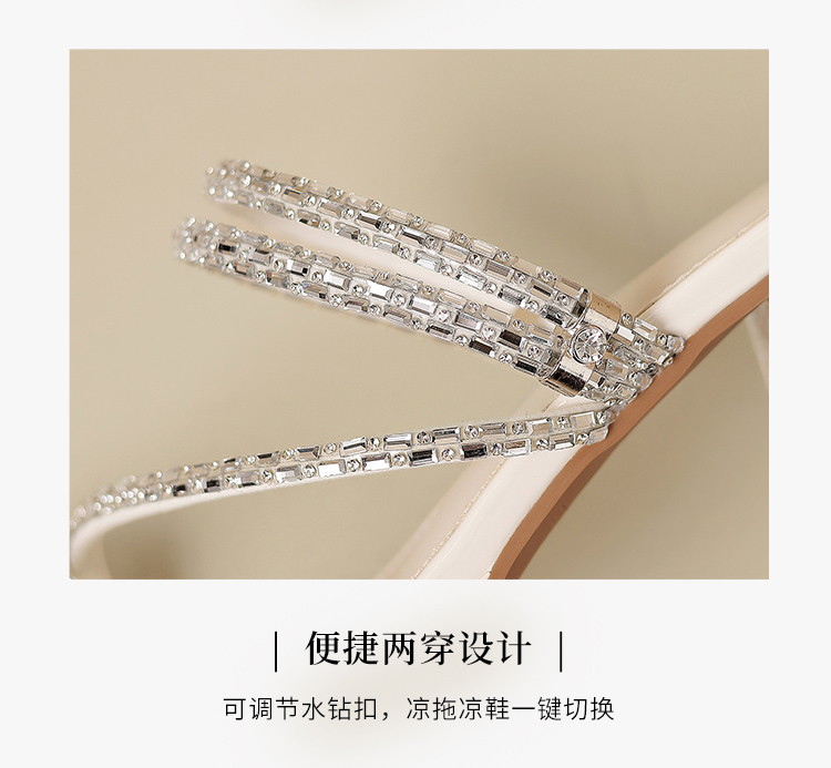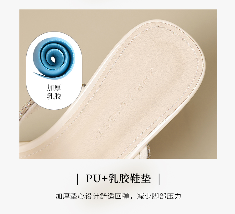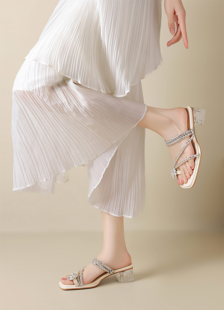 ZHR粗跟凉鞋女2025夏季新品外穿水钻夹趾法式轻奢高级凉拖鞋