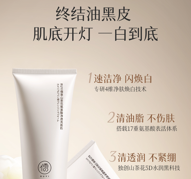 儒意山茶花氨基酸净透洗面奶150g 温和清洁控油保湿 清洁收毛孔 洗面奶 | 儒意官方商城