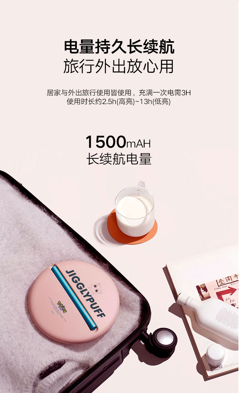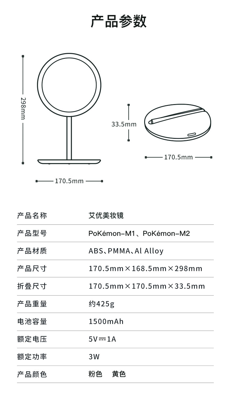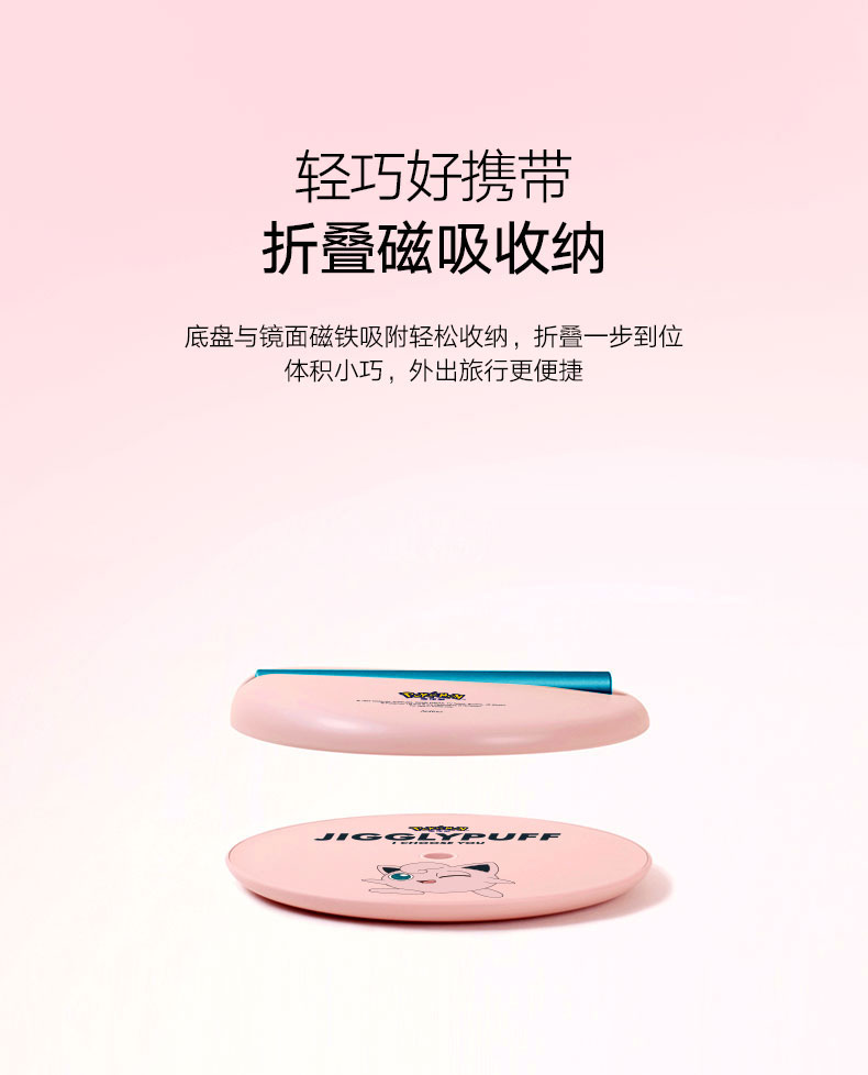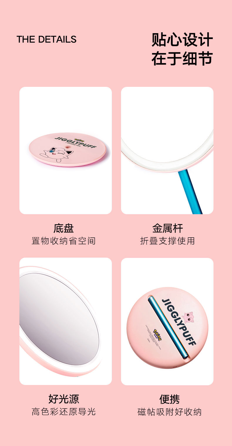 艾优皮卡丘胖丁款便携式美妆镜化妆镜带灯led随身镜桌面台式梳妆【艾优】