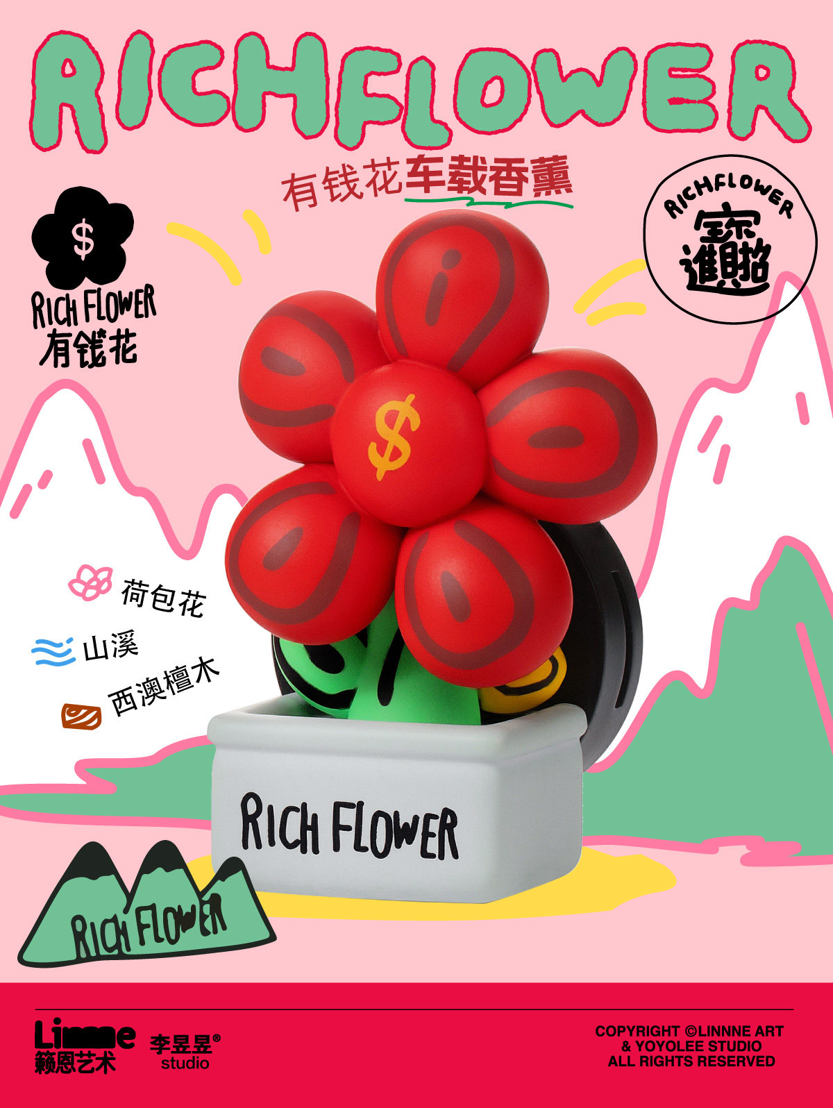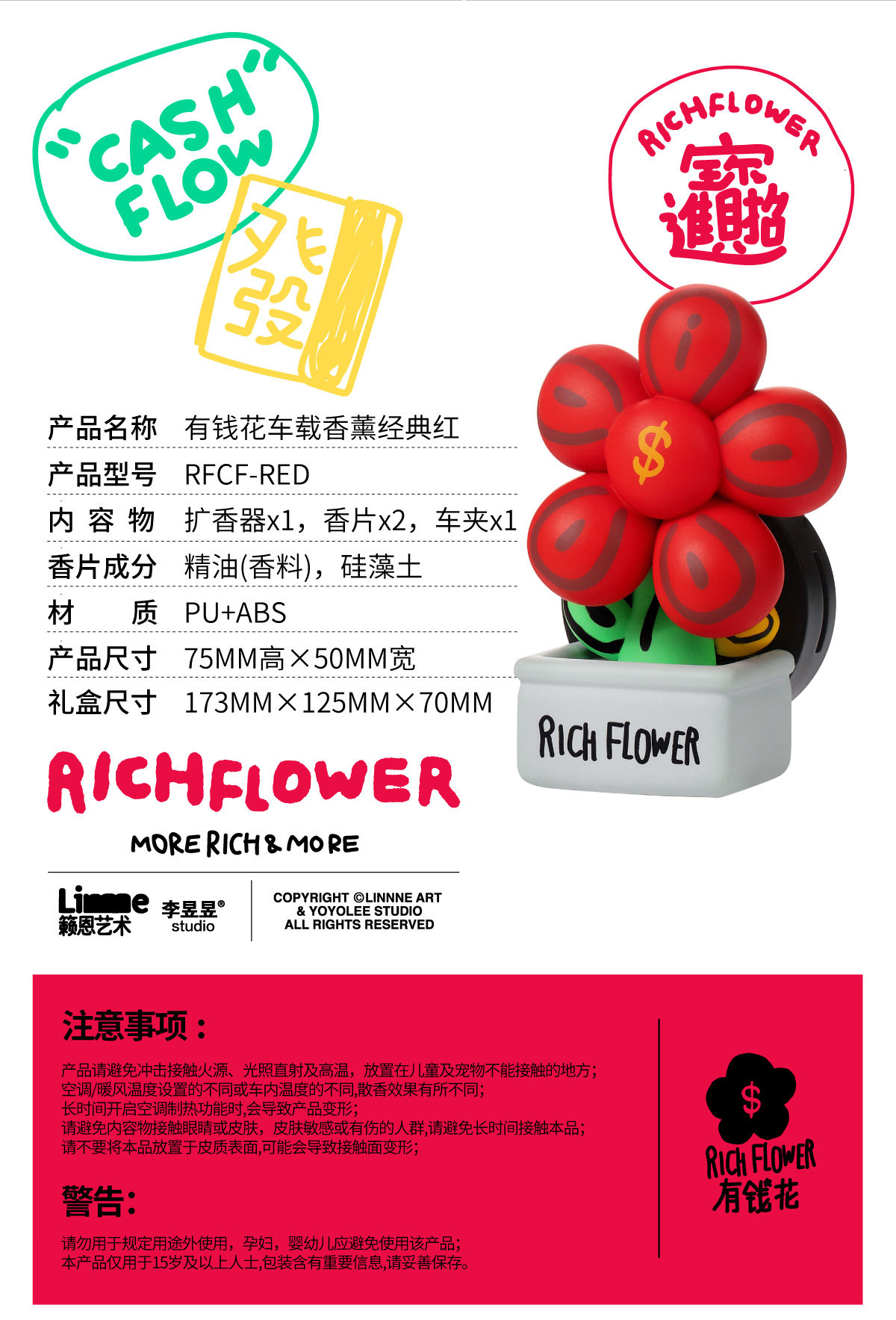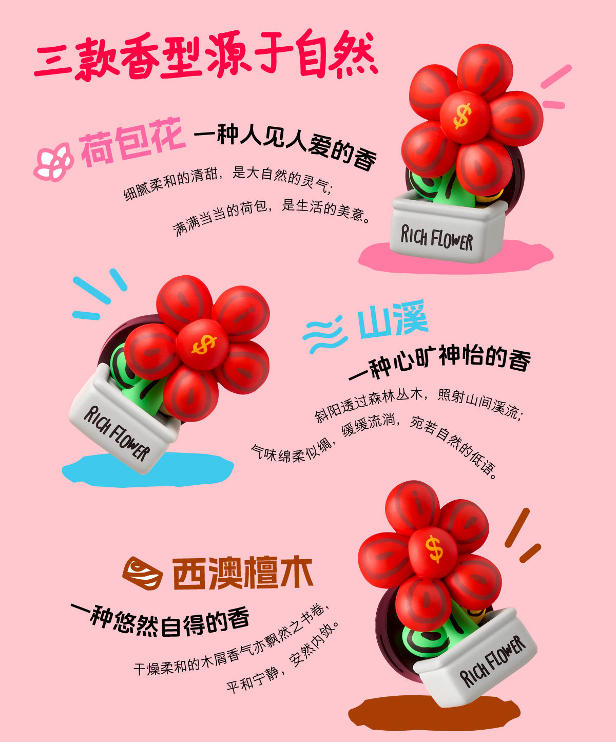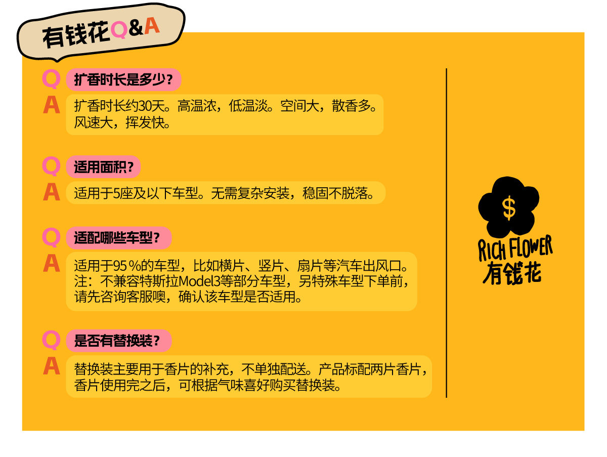 RICH FLOWER 有钱花 车载香薰 汽车香水车用持久淡香潮玩香氛