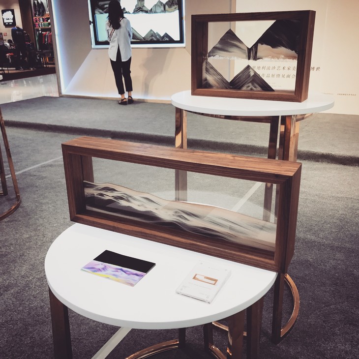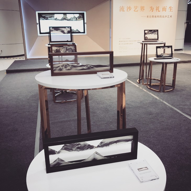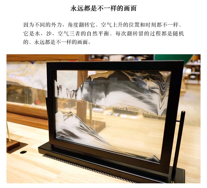 流沙艺术品可以根据客户需求,提供高级定制服务。定制的流 沙艺术品由奥地利 KB 流沙艺术大师克莱斯·博世手工制作完成。定制尺寸、木框材质、流沙原料和制作难度等因素的不同,会影响制作时间和价格。