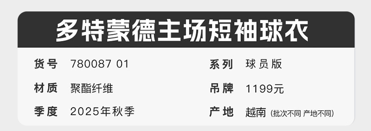 小李子PUMA/彪马25-26赛季多特蒙德主场球员版短袖比赛球衣780087 01