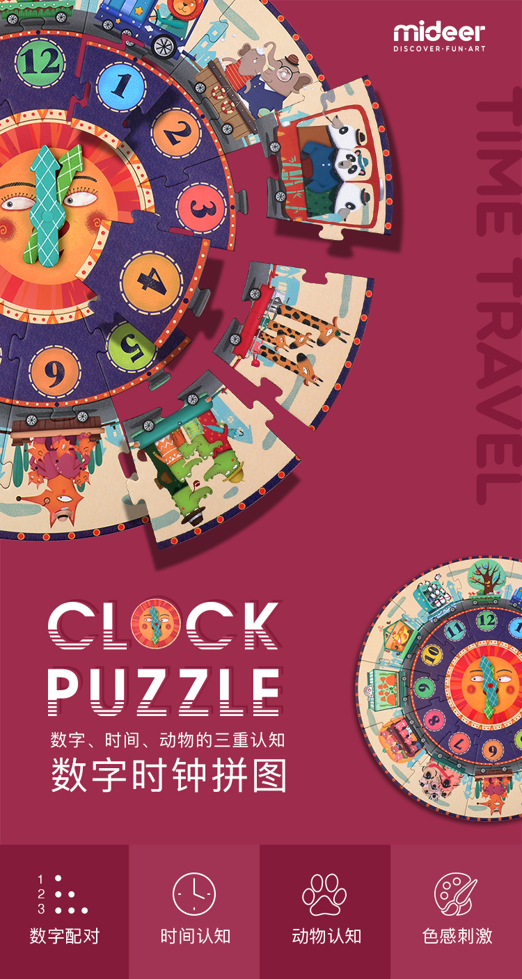 弥鹿数字时钟拼图/时间之旅/MD3020儿童学生益智玩具减压
