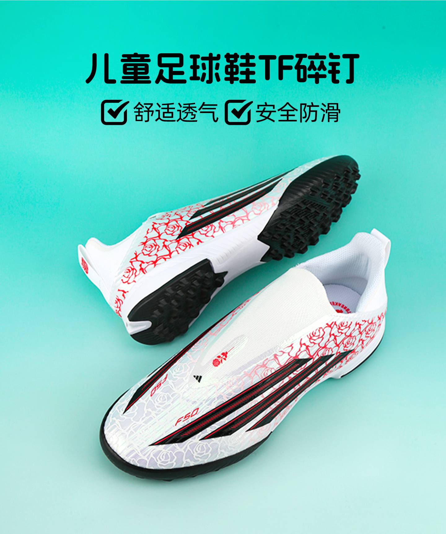 小李子阿迪达斯儿童足球鞋F50TF碎钉足球训练鞋学生男女孩KJ3779