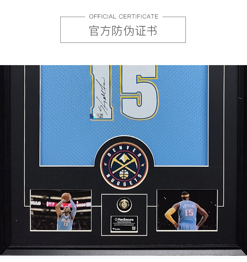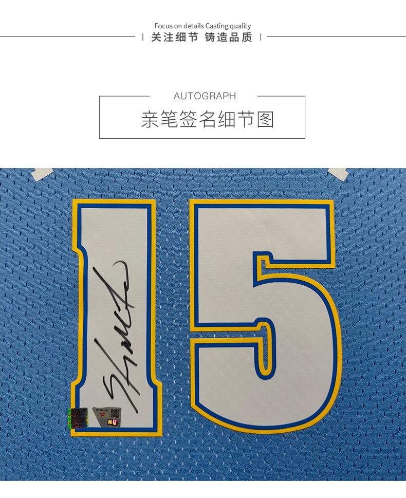收藏系列 安东尼 掘金队15号蓝色 亲笔签名球衣