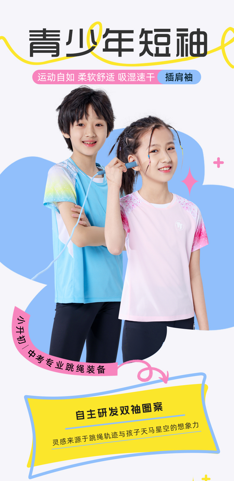 【儿童运动】跳跳森林青少年运动短袖T恤 吸湿速干 户外运动 科技跳绳装备