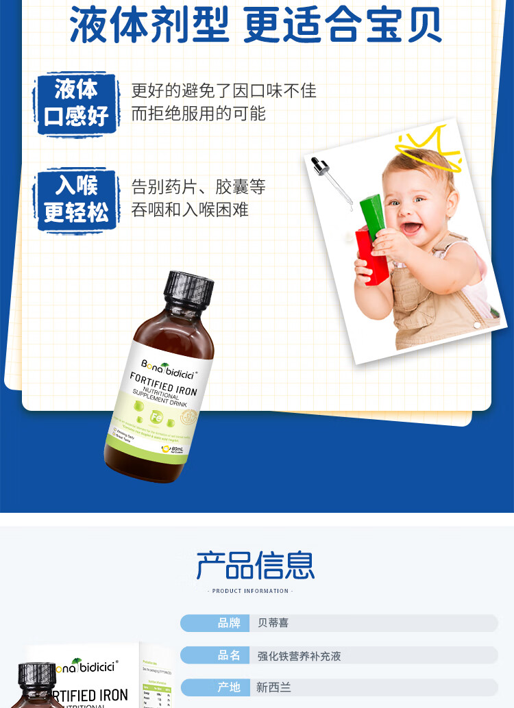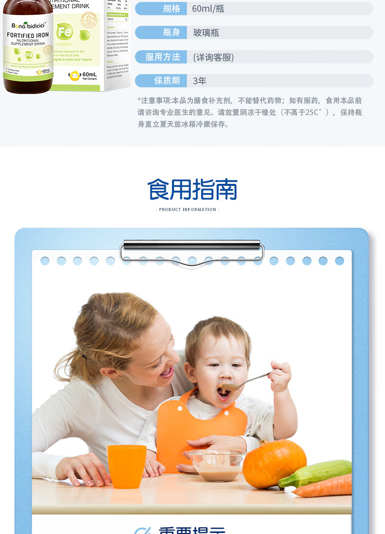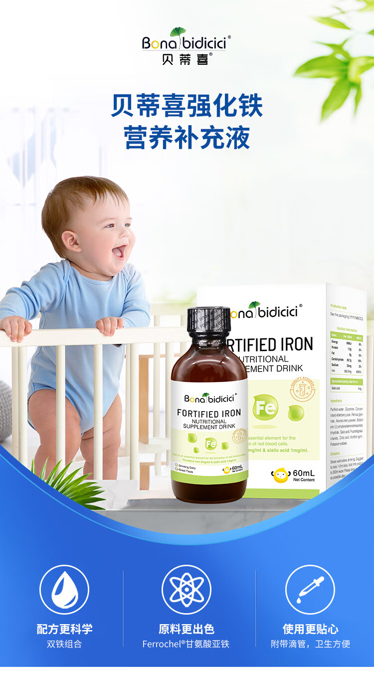 贝蒂喜强化铁富铁饮液 儿童膳食营养温和型铁剂 60ml/瓶 敏宝适用