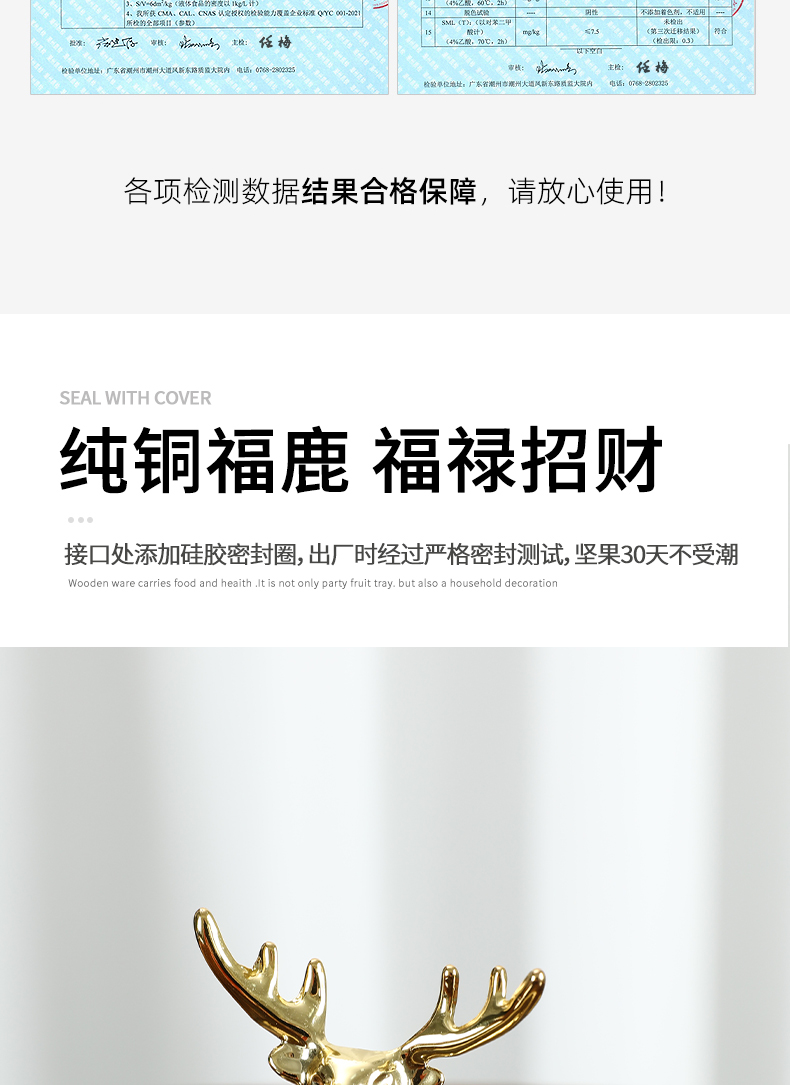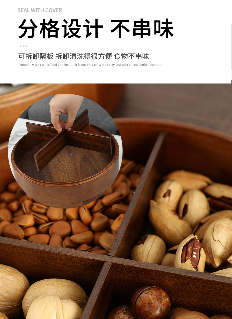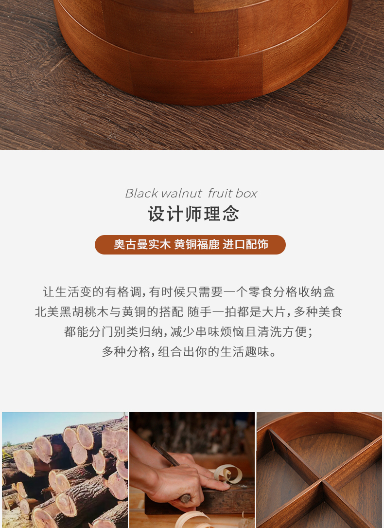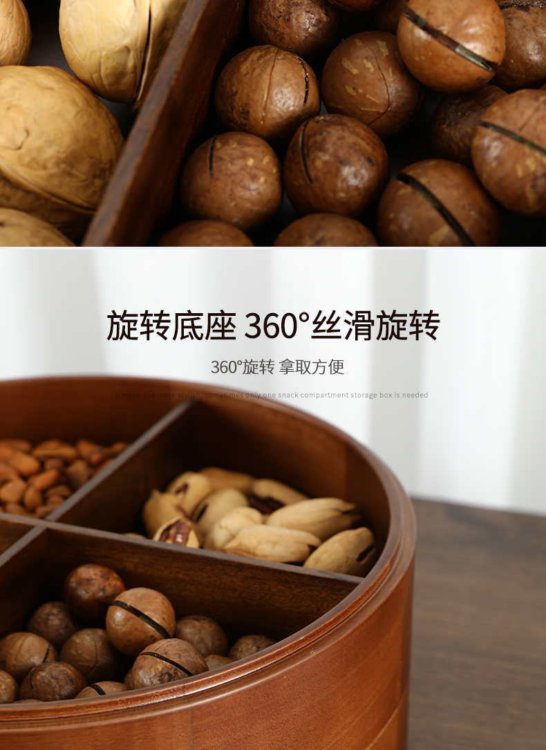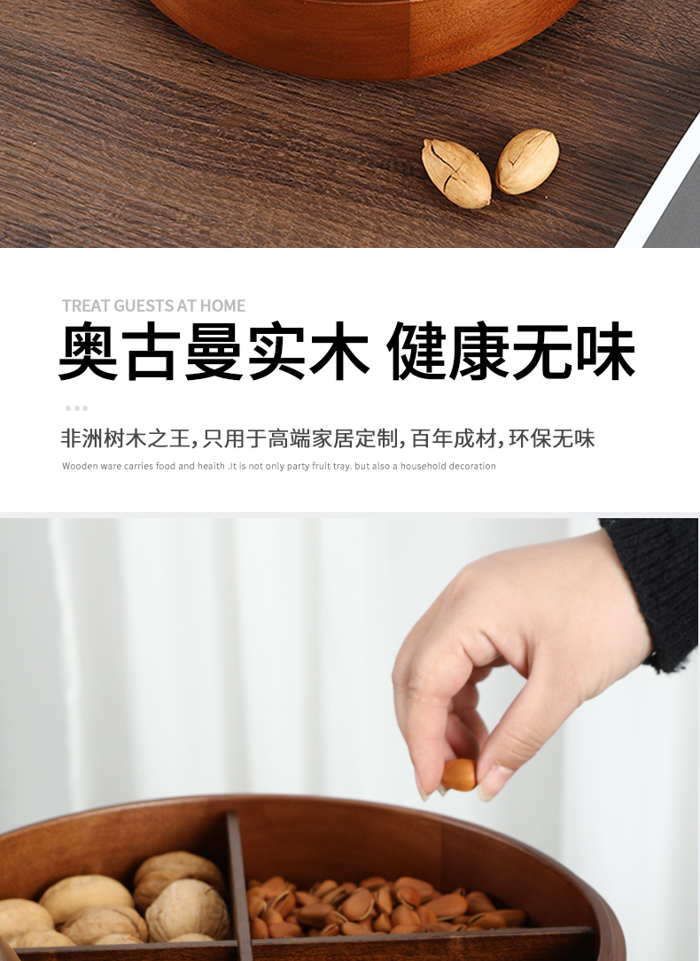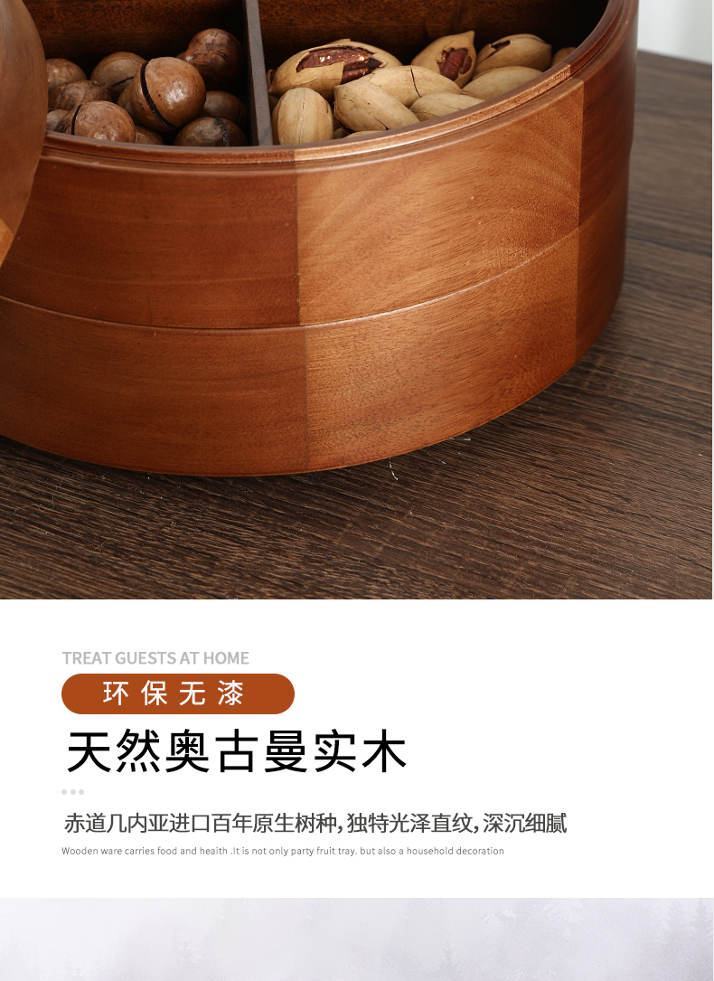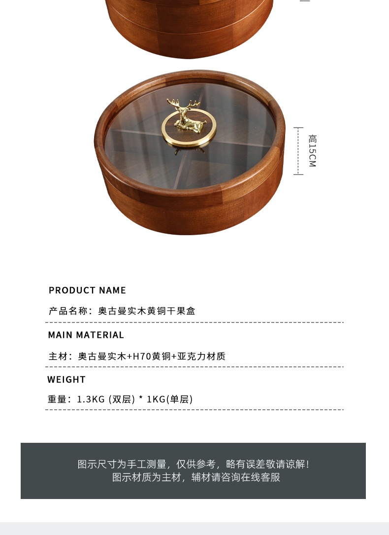 新款密封实木干果盒客厅家用茶几坚果瓜子果盘轻奢高档收纳盒铜鹿头透明盖 胡桃木旋转果盒 糖果盒 首饰盒 单双层收纳