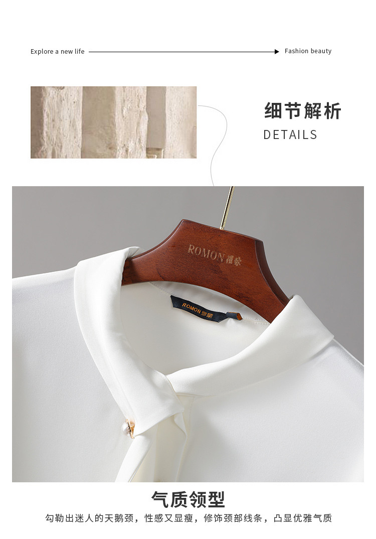 【轻盈舒适】罗蒙新款女士长袖衬衫时尚设计感商务通勤气质百搭衬衣女