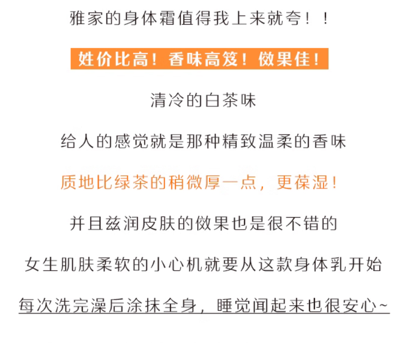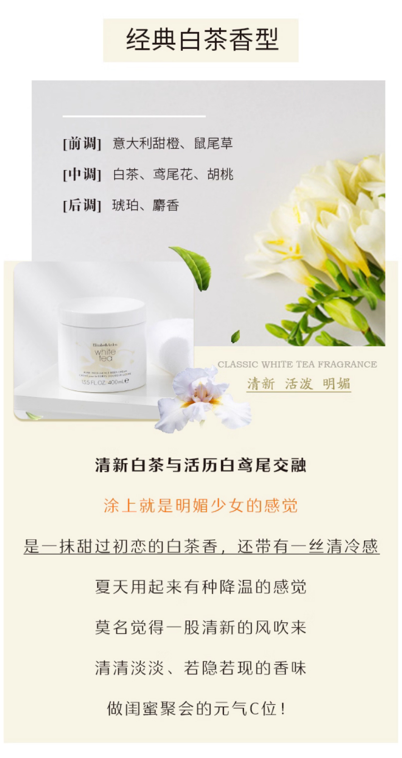【品名】雅顿白茶身体乳身体霜400ml 姜百合