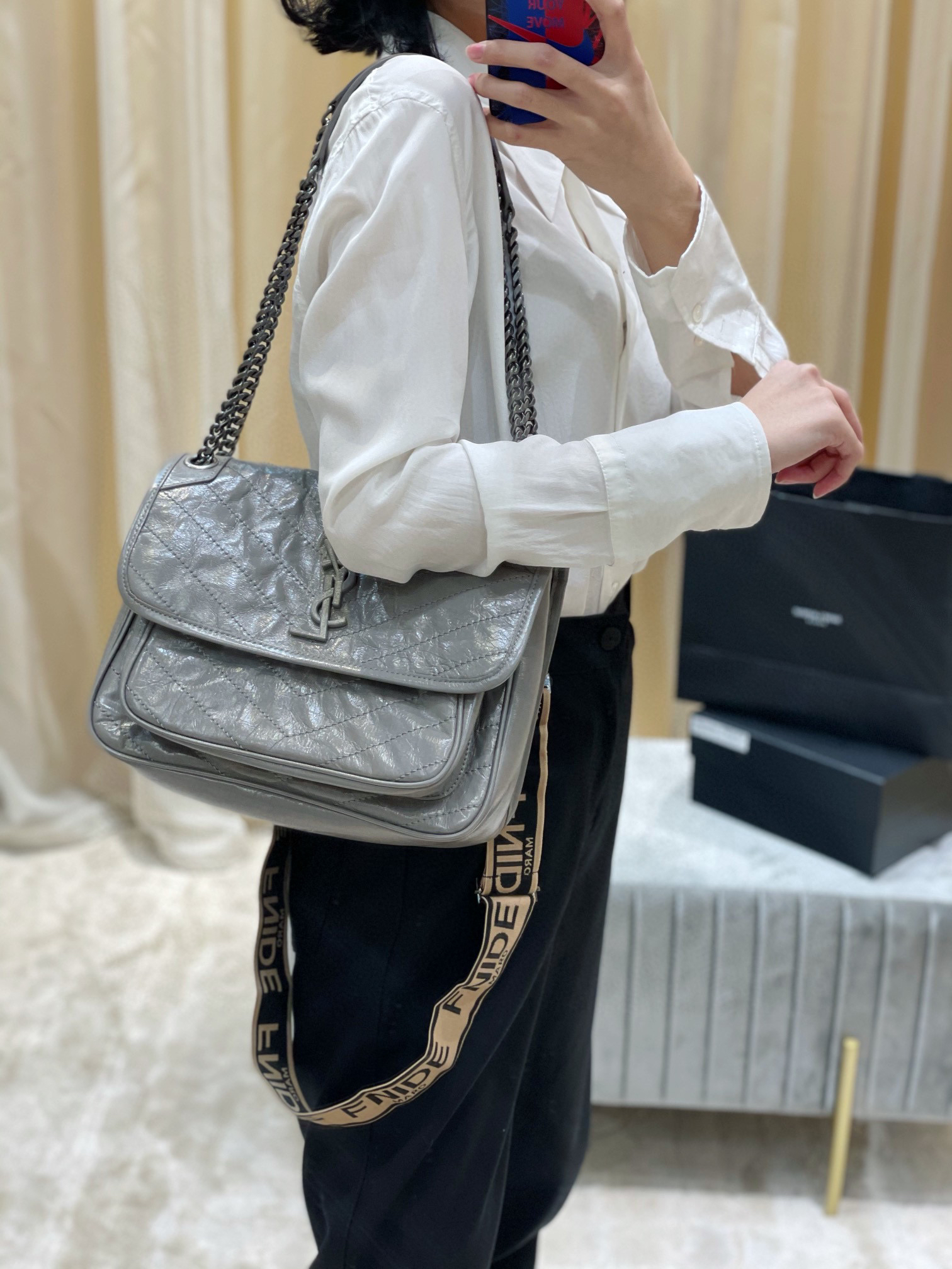 【原厂皮 NIKI】新版本(中号)-大象灰