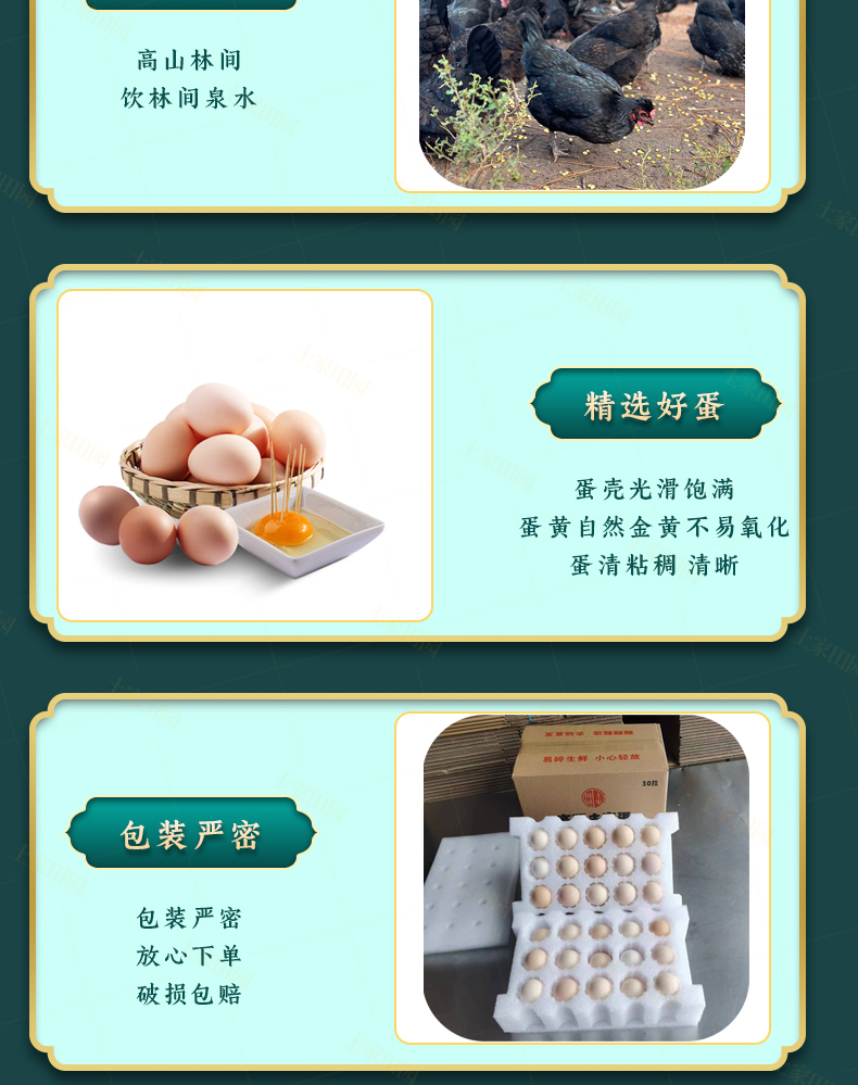 【产品规格】湖北 高山散养黑土鸡鸡蛋。(每箱都是独立的包装,如购买多件分多个包裹发出,可能会前后陆续到货)。