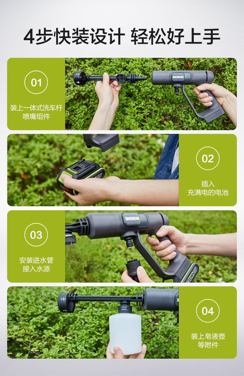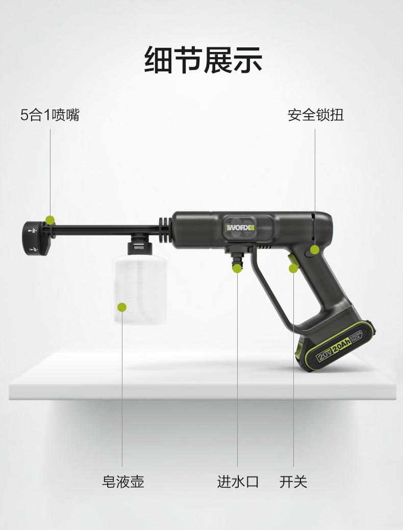威克士高压无线电动清洗工具家用五金电动工具 WU623