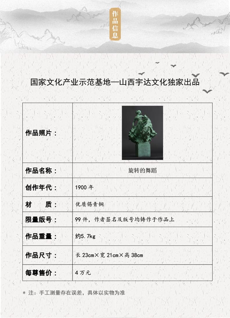 宇达青铜文化 限量99版 名家艺术品《旋转的舞蹈》 作者:Karl Miles 高38cm