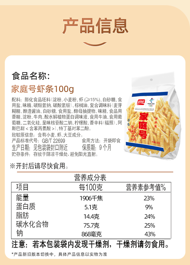 【69任选10件】盼盼家庭号虾条(烤肉味)100g